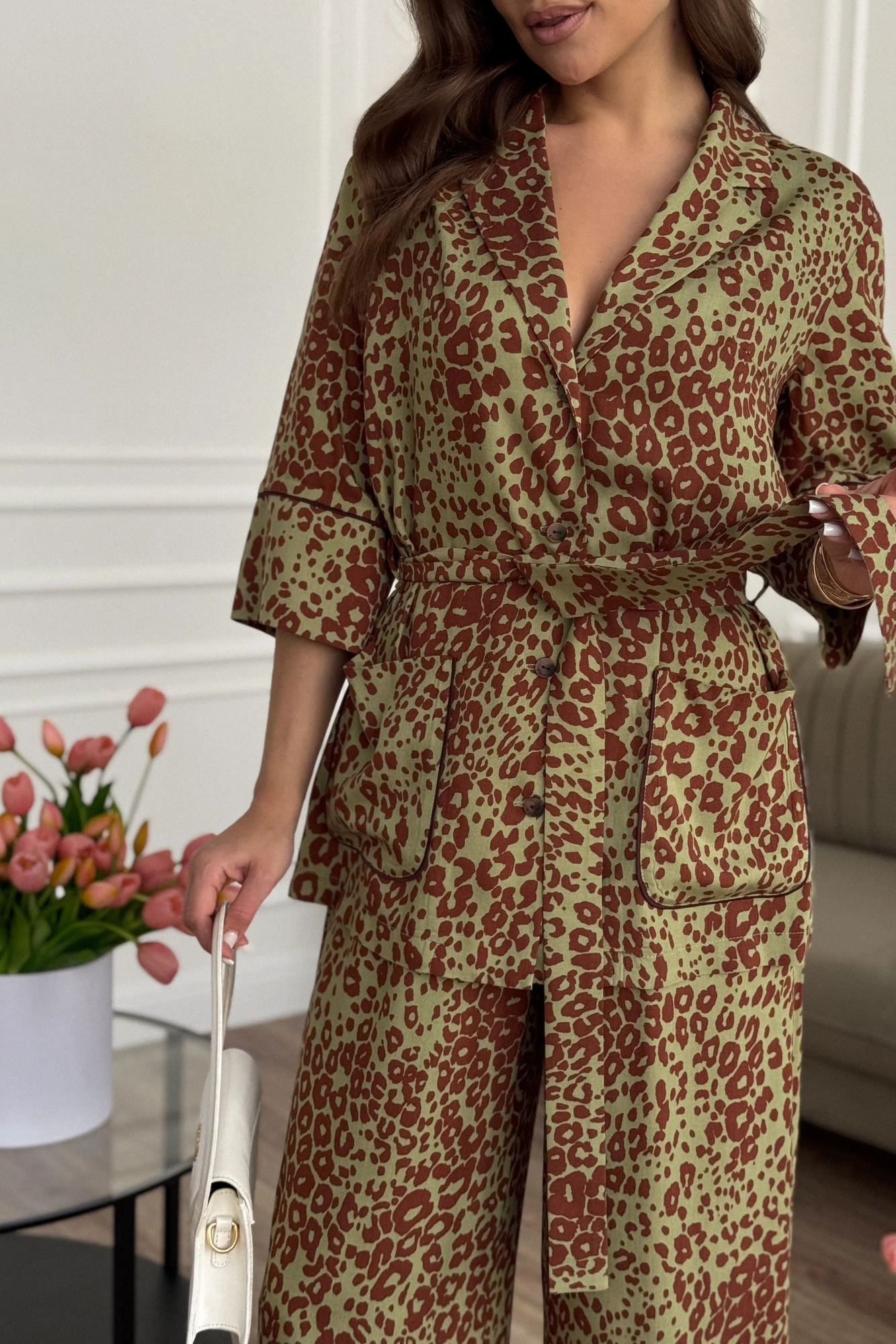 Брючный костюм DilanaVIP 2092 леопардовый принт двойка