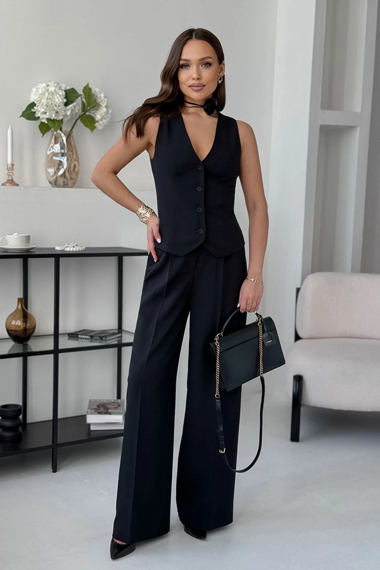 Брючный костюм DilanaVIP М-1993 черный тройка