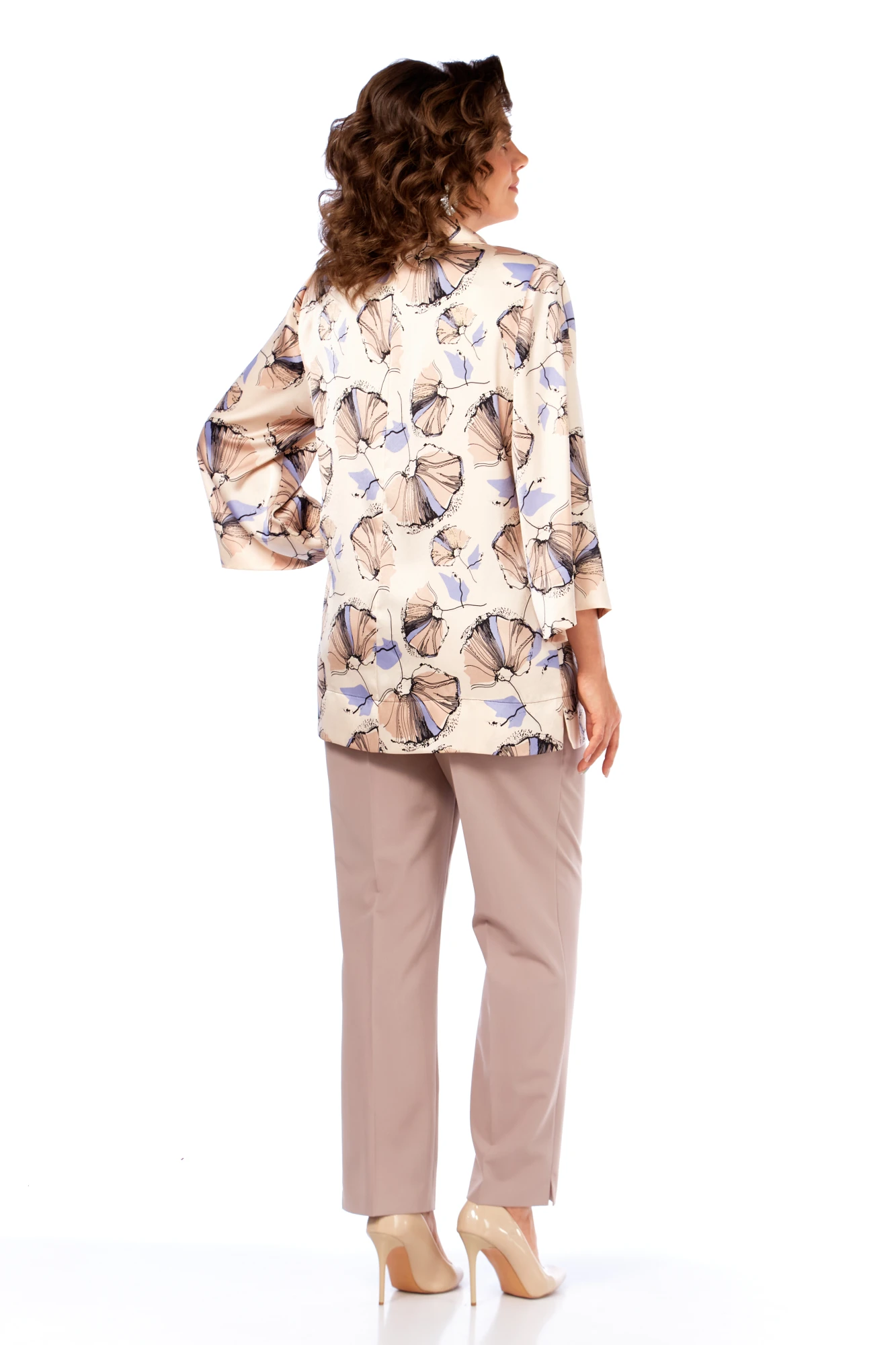 Брючный костюм Элль-стиль 2394 бежевый принт, брюки бежево-серые двойка