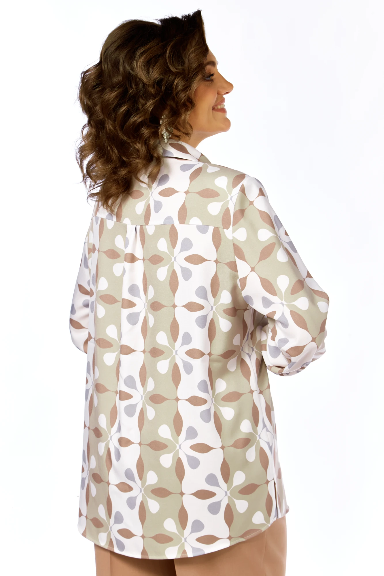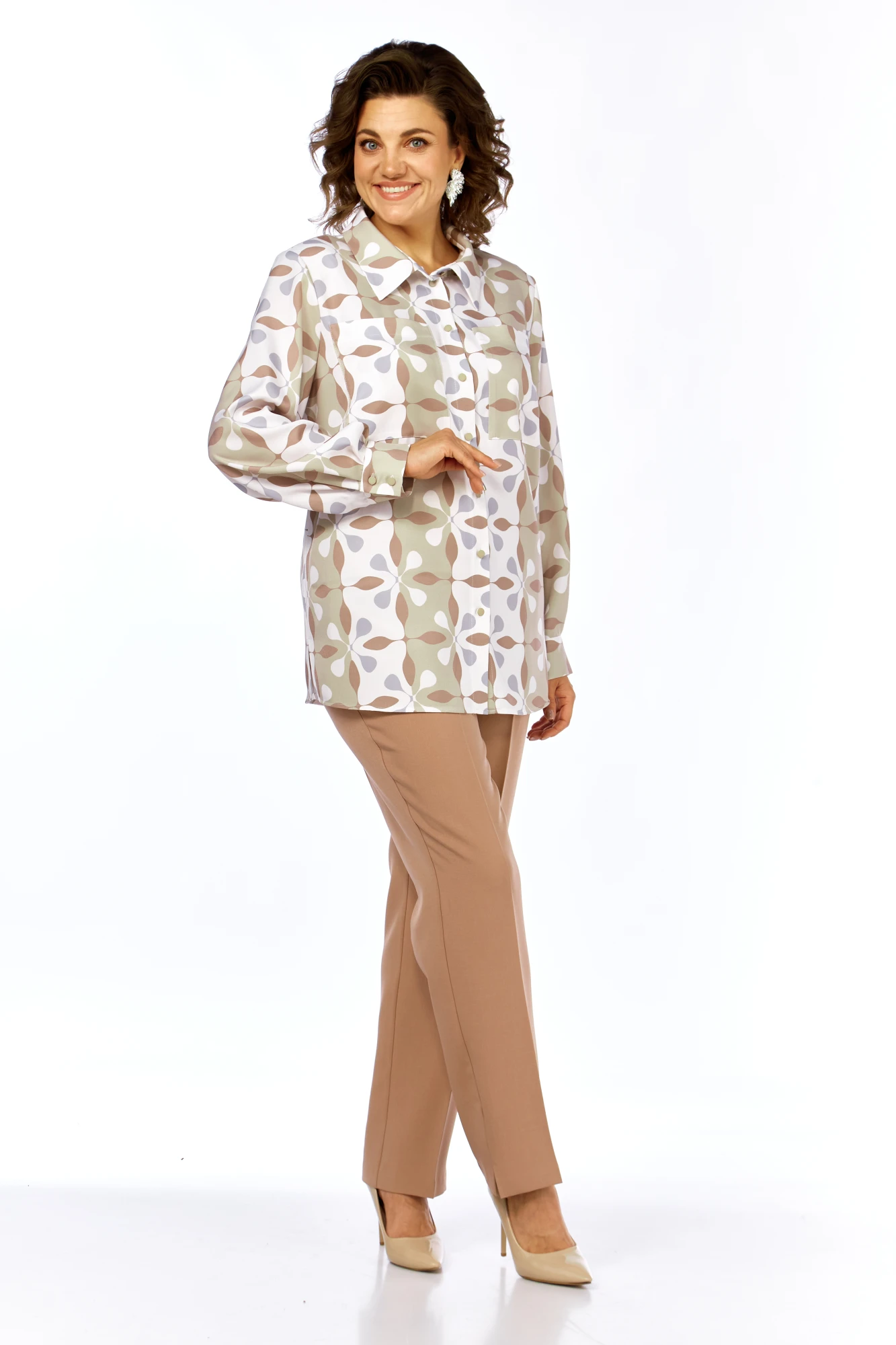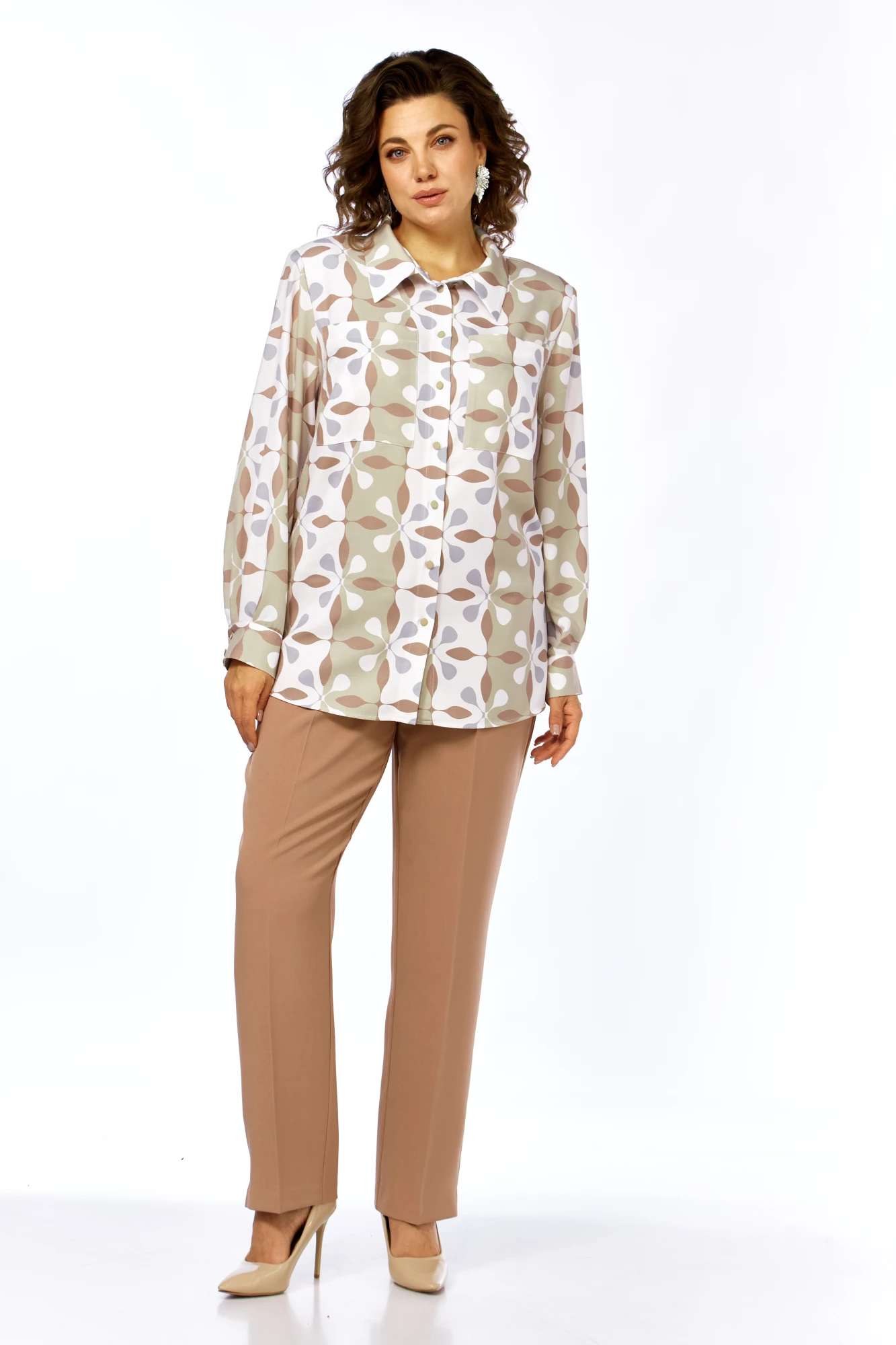 Брючный костюм Элль-стиль 2395 бежевый принт, брюкм капучино двойка