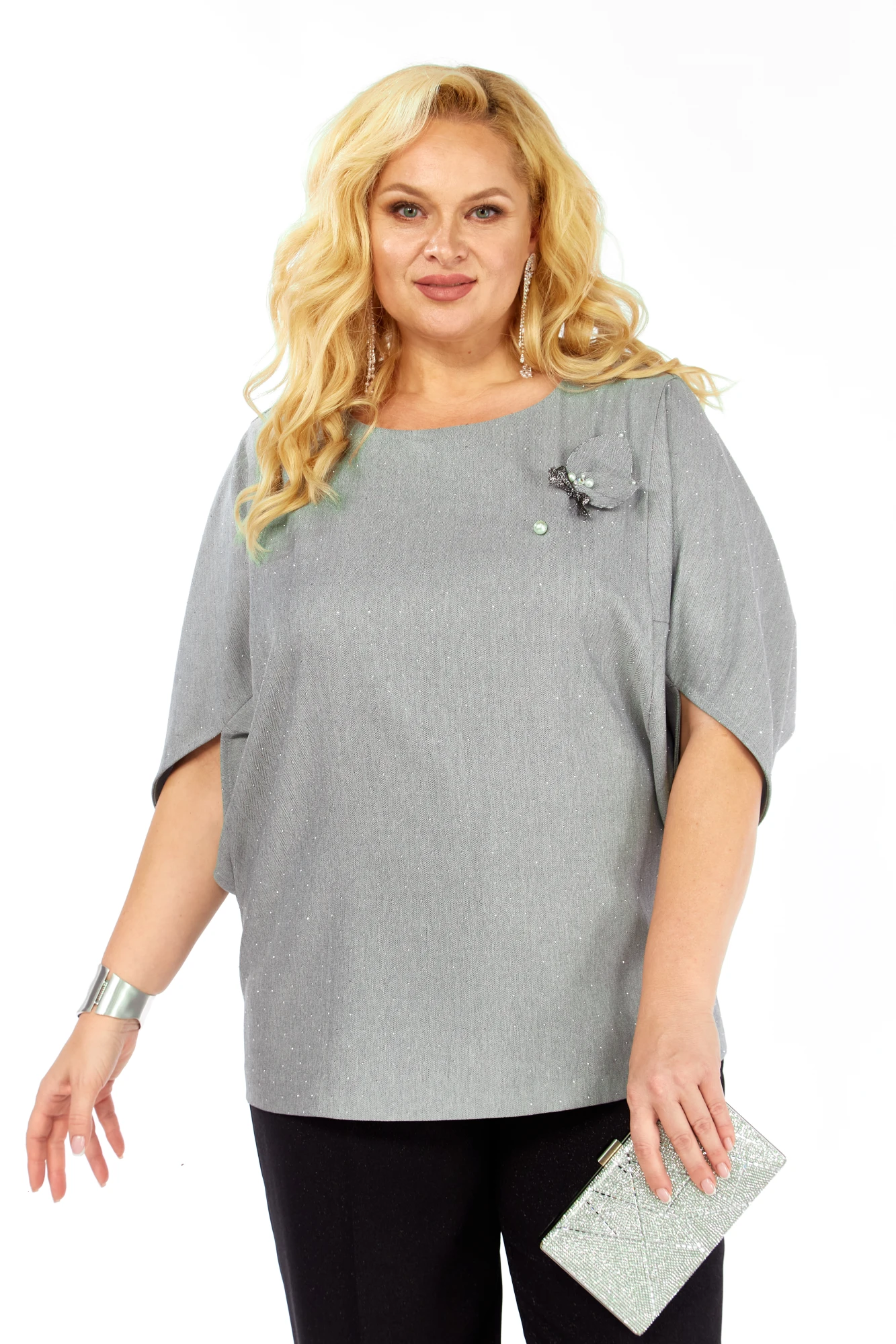 Брючный костюм Элль-стиль 2436 серый+черный