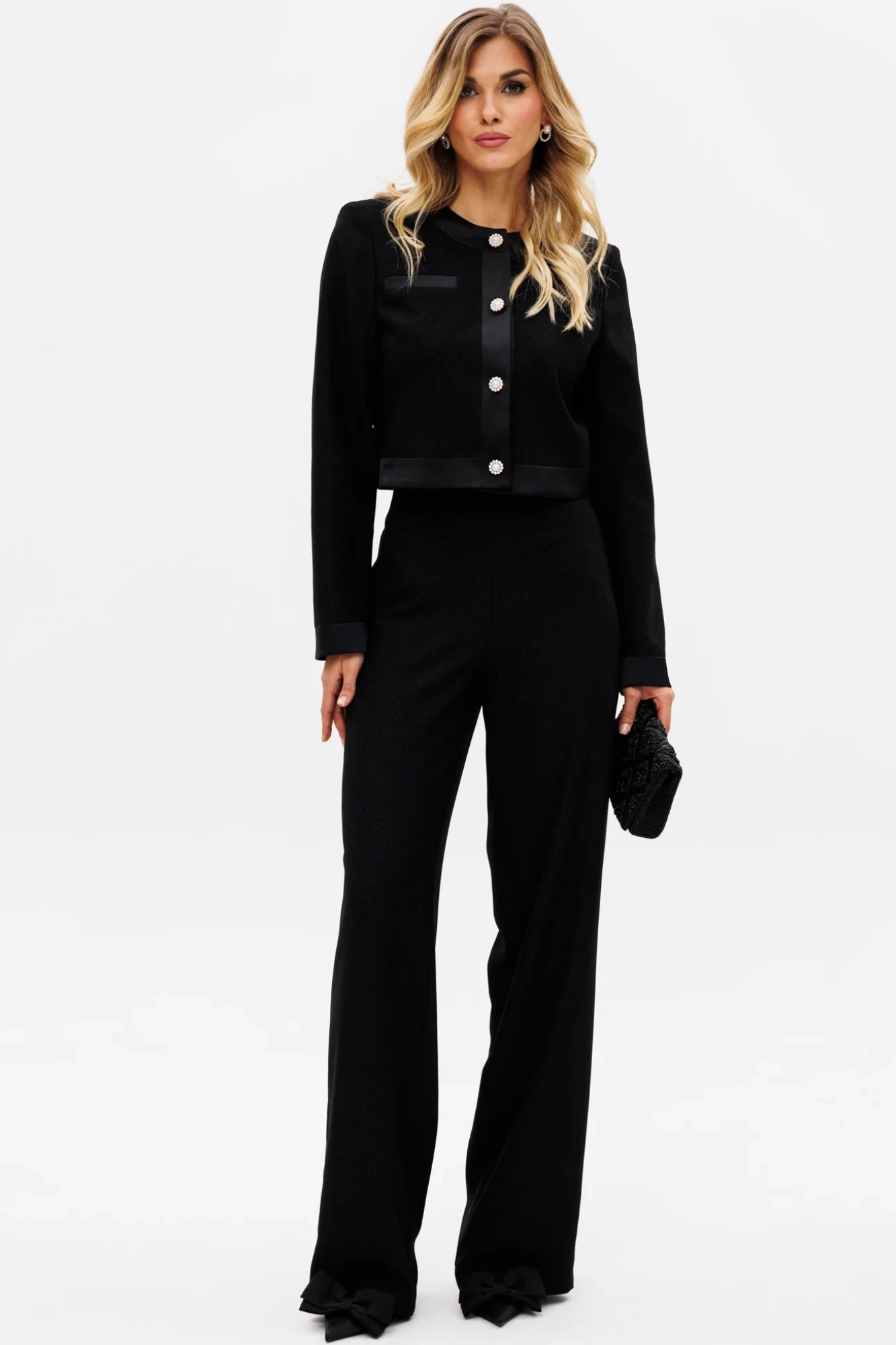 Длина жакета: 44 см. длина рукава: 62,5 см. Длина брюк: 114, 5 см