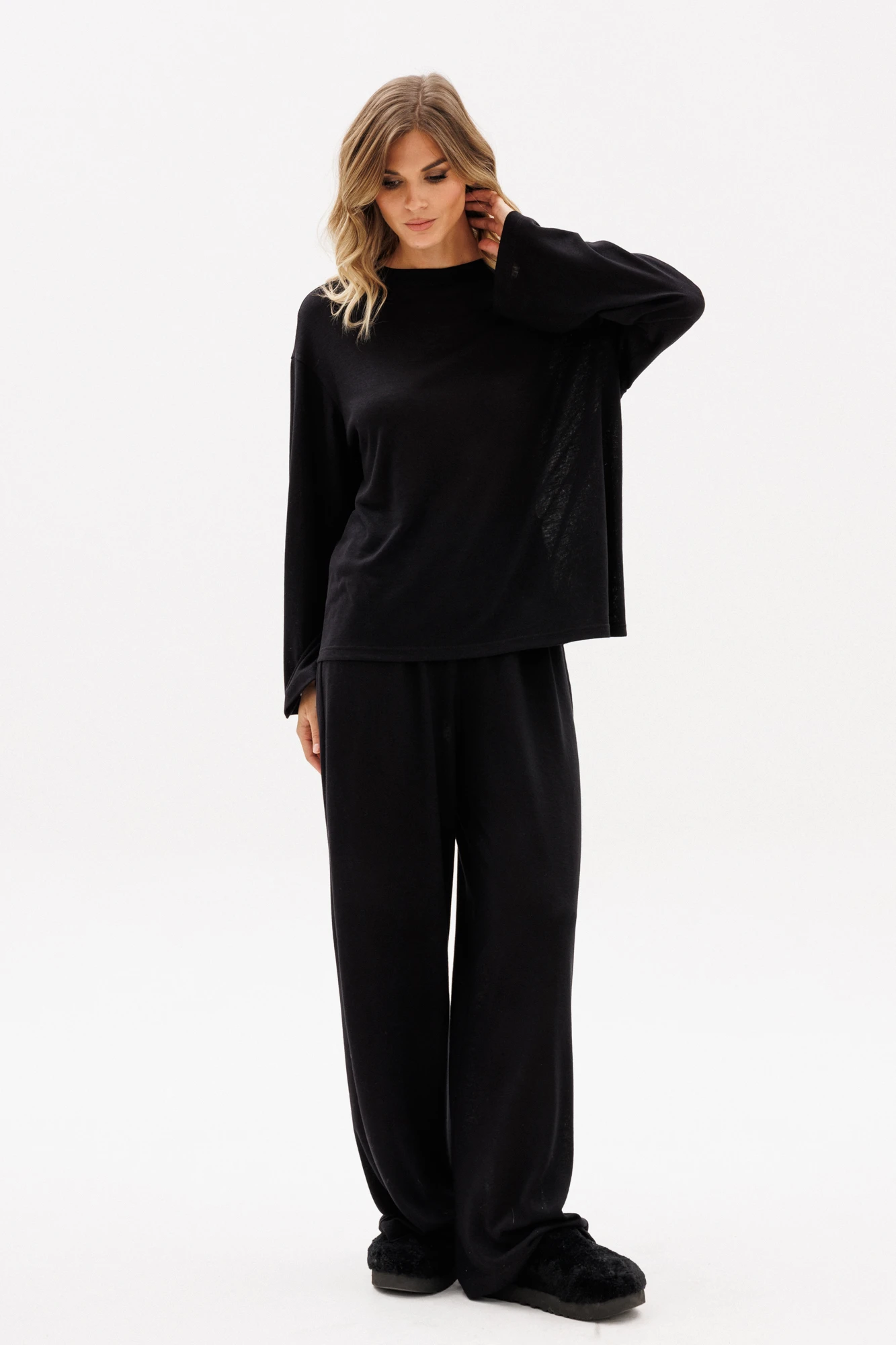 Длина джемпера: р.44-48 - 63 см, р.50-54 - 64,5 см. Длина рукава от горловины: р.44-48 - 78 см, р.50-54 - 79 см. Длина брюкпо боковому шву: р.44-48 - 111 см, р.50-54 - 112 см.