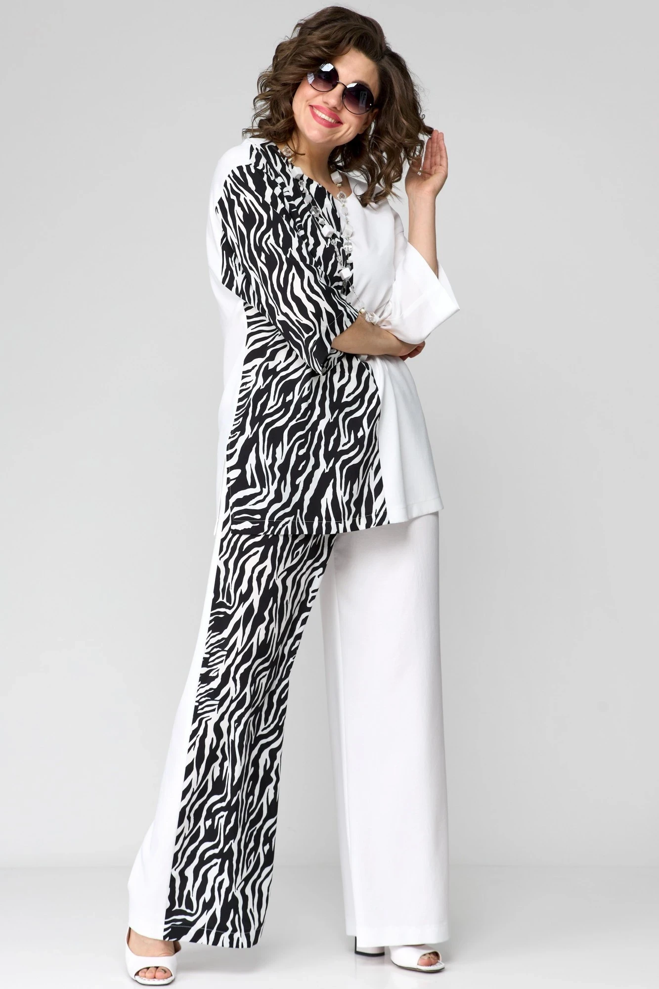 Брючный костюм EVA GRANT 7082 бело-черный двойка