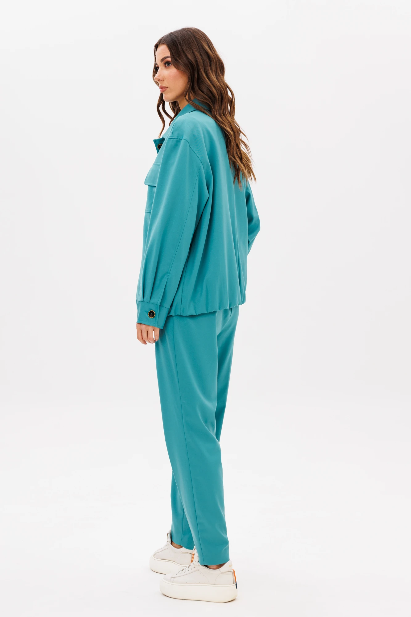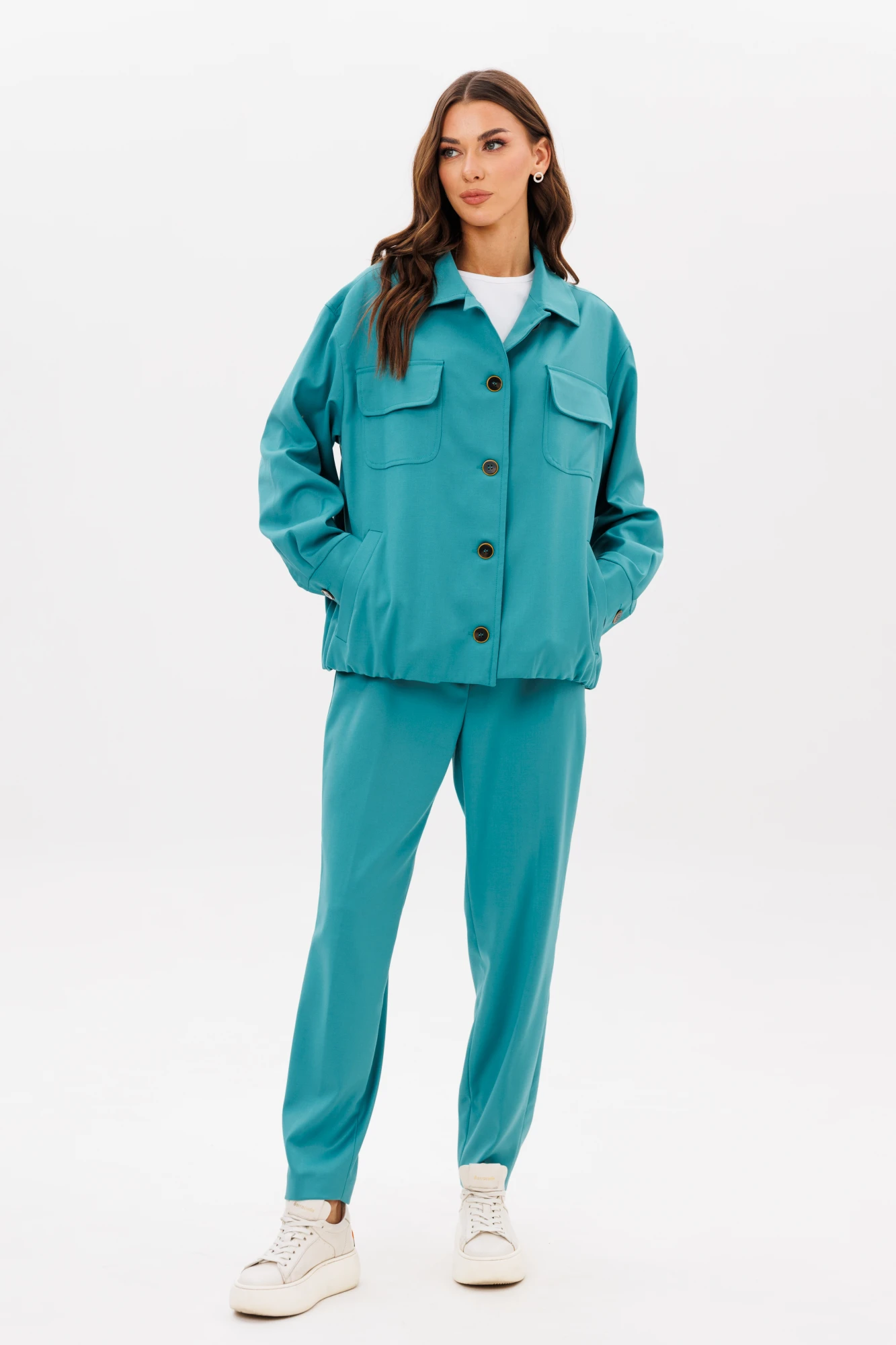 46, 48 , 50Свободный силуэт с заниженной линией плеча, рукав, расширенный в области оката, центральная застёжка на петли и пуговицы, стояче-отложной воротник.