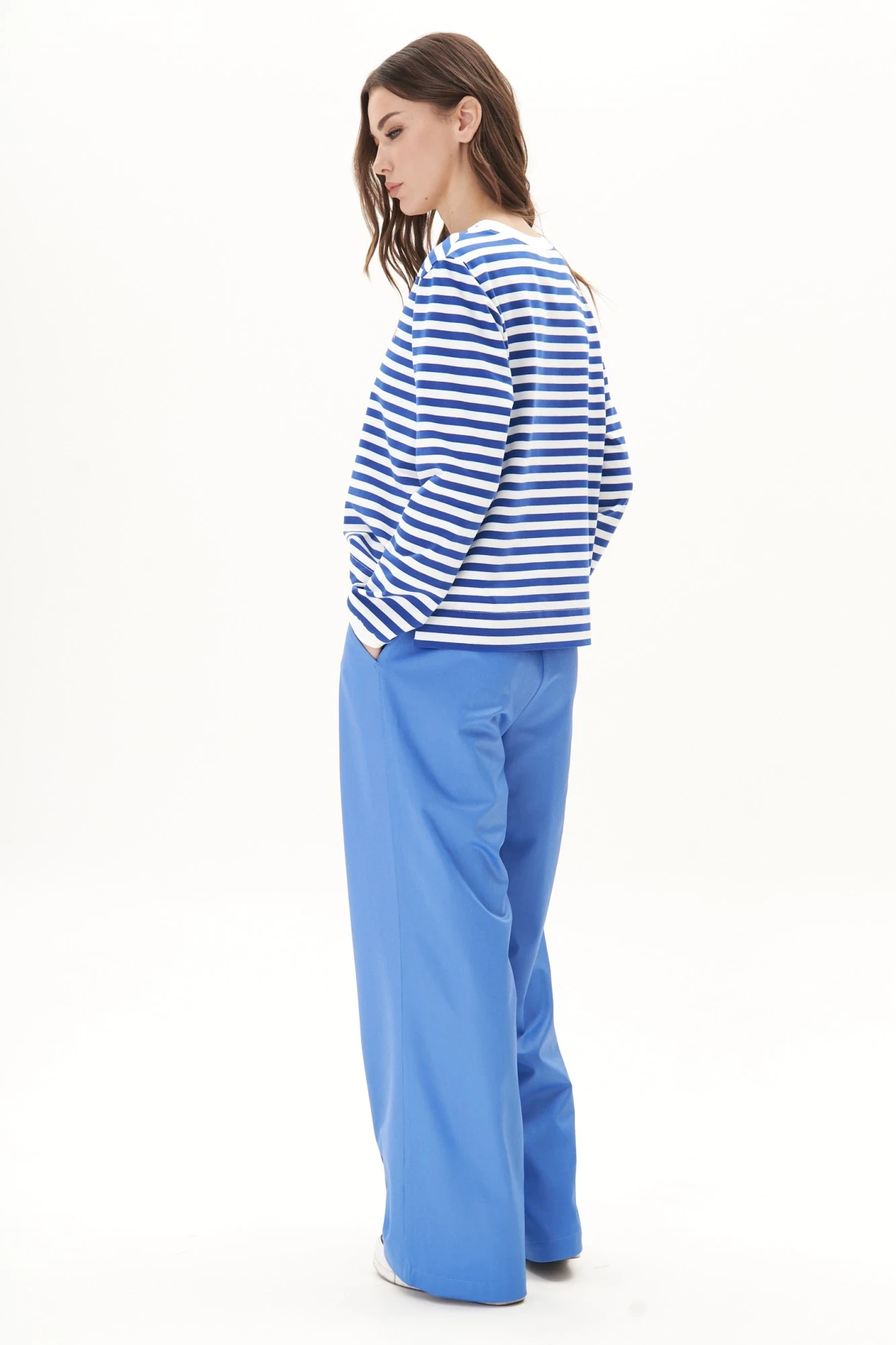 44,46,48, 50Комфортная элегантность на каждый день. Отличный выбор для тех, кто ищет золотую середину между формальным и и спортивным направлением casual. Яркие брюки и уравновешивающий их лонгслив в полоску делает образ многогранным.