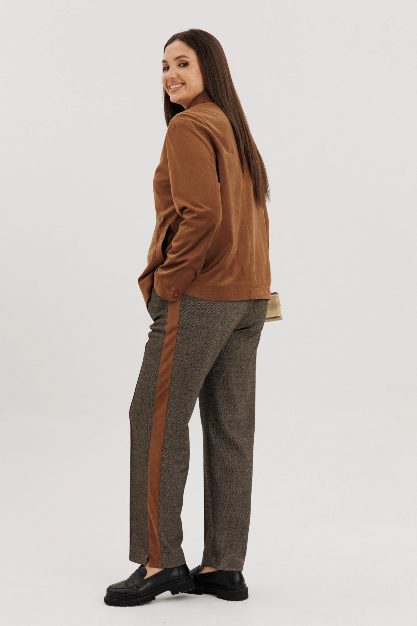 Боковые замшевые вставки в цвет жакета.