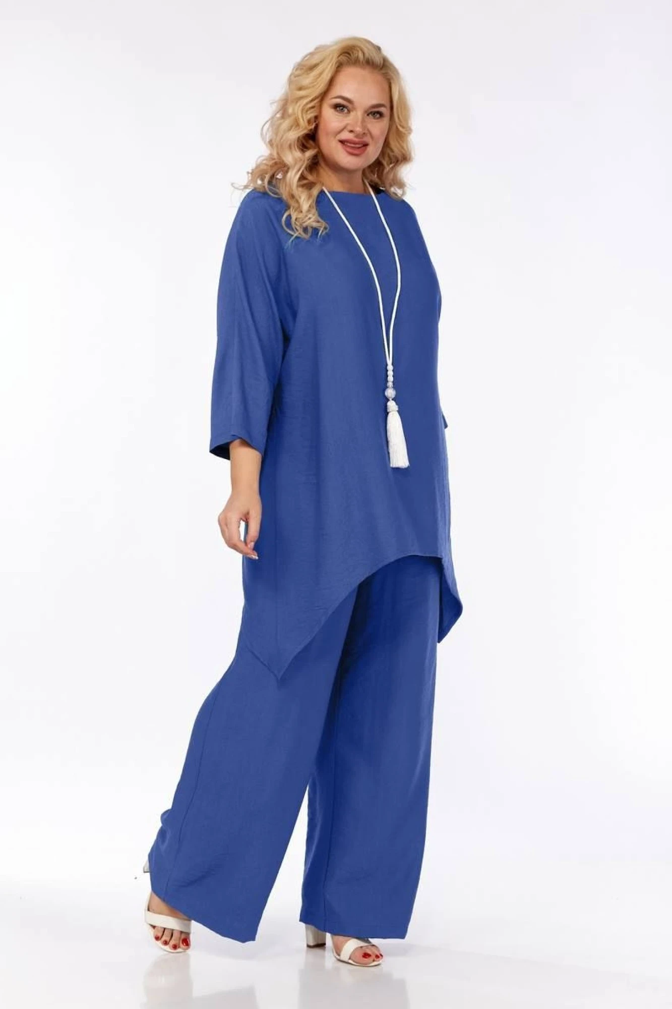 56р: Длина брюк по боковому шву - 106 см. Ширина резинки - 4 см. ОБ - 140 см. ОТ 96-120 см. Длина туника - 73 см. ОГ 156 см. Ширина рукава внизу 38 см