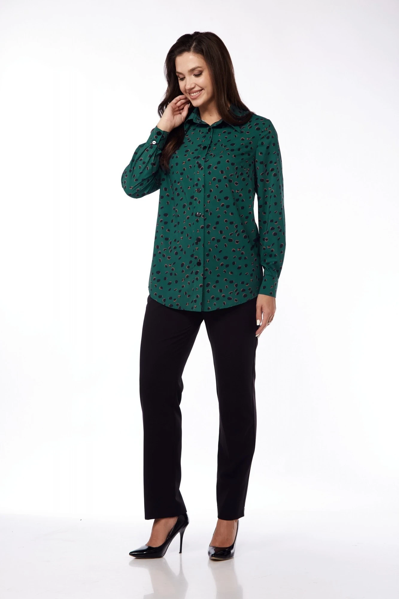 46р (ПОЛУОБХВАТ ГРУДИ 54, ПОЛУОБХВАТ БЕДЕР 57, ДЛИНА блузы 73, ДЛИНА РУКАВА 61, ШИРИНА РУКАВА ВВЕРХУ 19, ШИРИНА МАНЖЕТА 10, ПОЛУОБХВАТ ТАЛИИ брюк 38, ПОЛУОБХВАТ ТАЛИИ брюк (в растянутом виде) без резинки, ПОЛУОБХВАТ БЕДЕР брюк 52, ДЛИНА БРЮК 104, ШИРИНА НИЗА БРЮК 20);
