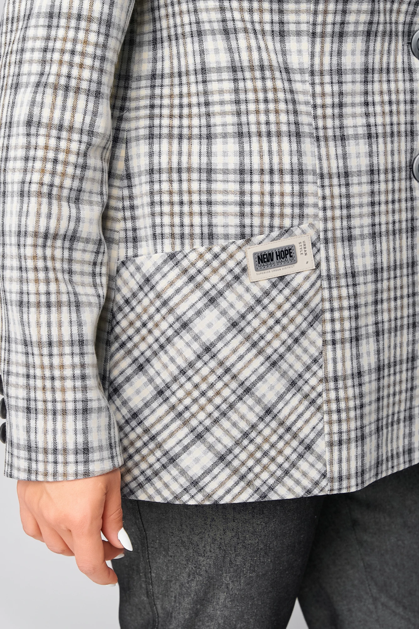Жакет прямого силуэта на подкладке — строгий, но изящный. Однобортная застёжка с элегантными лацканами подчеркивает выдержанный характер, а прорезной карман добавляет практичности. Двухшовные рукава и аккуратный средний шов на спинке подчёркивают архитектурность кроя, словно намекая на сдержанный шарм городской моды.