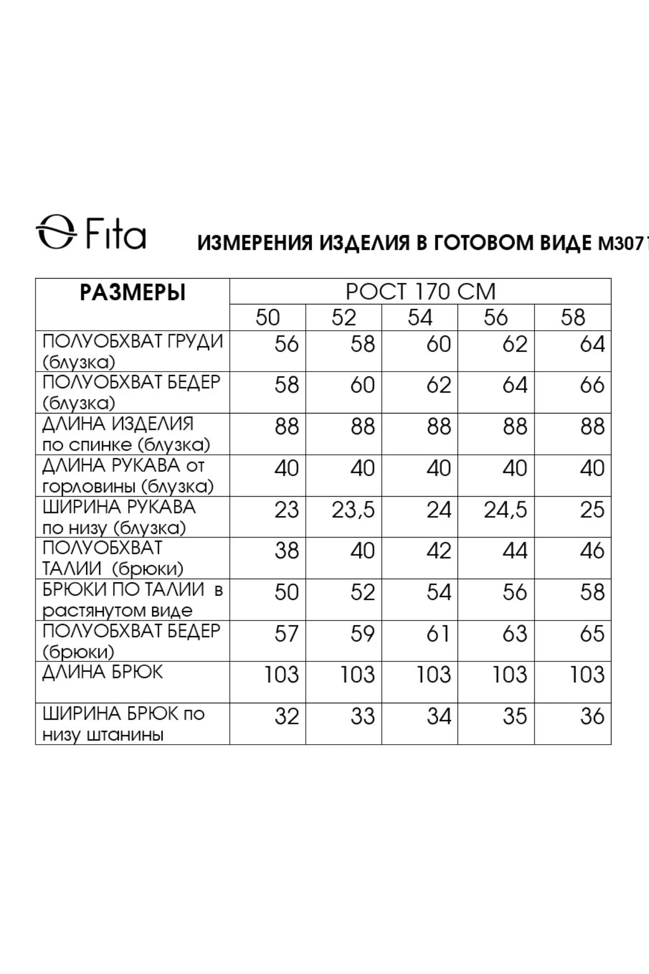 50, 52 , 54 , 56 , 58Брюки выполнены из вискозной ткани с лампасом. Брюки прямого силуэта, в боковом шве - карманы, пояс на резинке, низ брюк обработан швом в подгибку, с закрытым срезом. Брючный костюм идеально для летних и весенних прогулок."