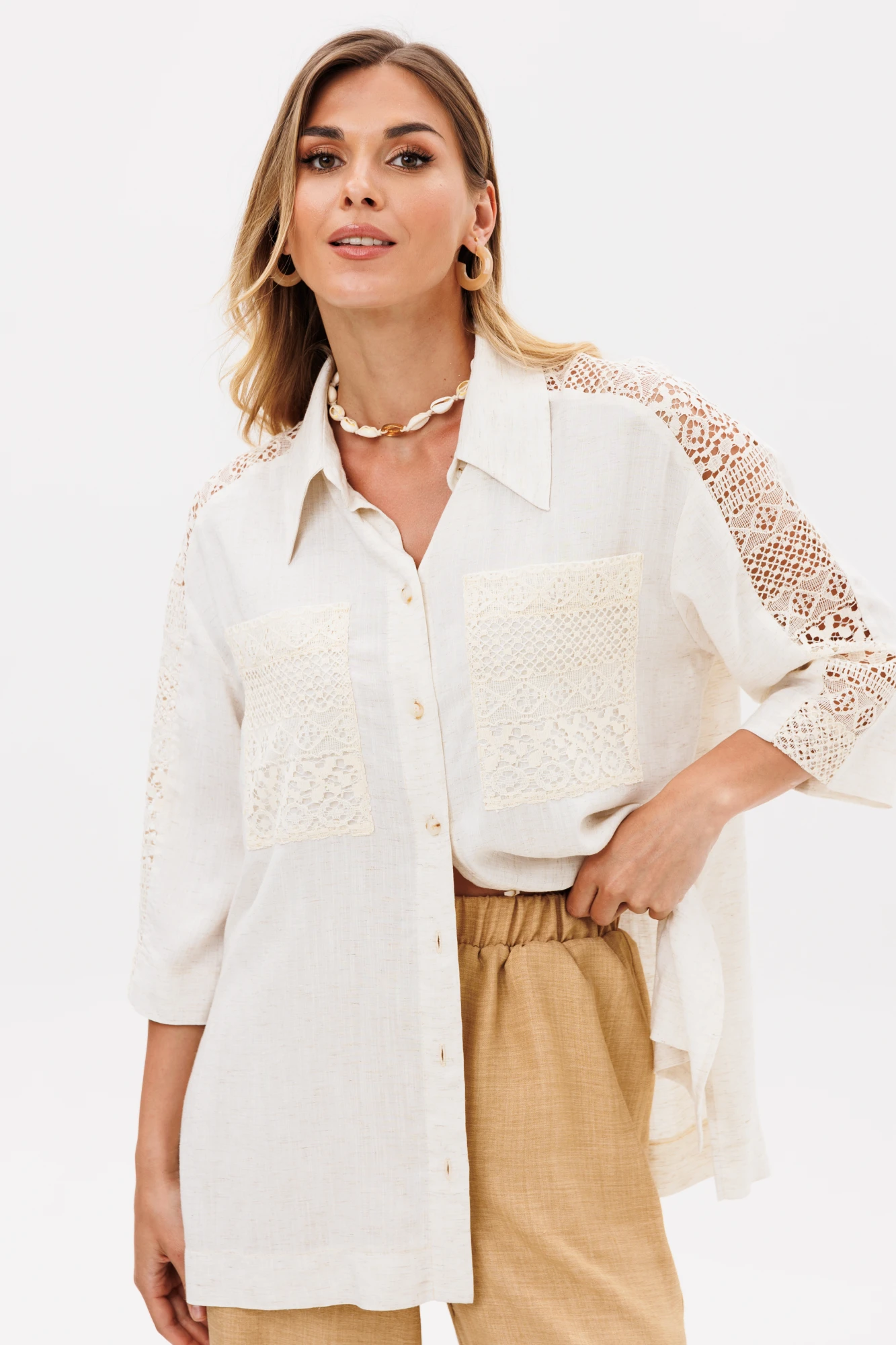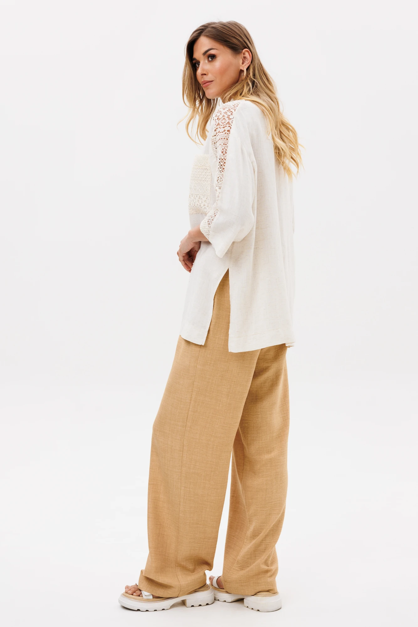 Брючный костюм GIZART 5401 молочный меланж, песочный двойка