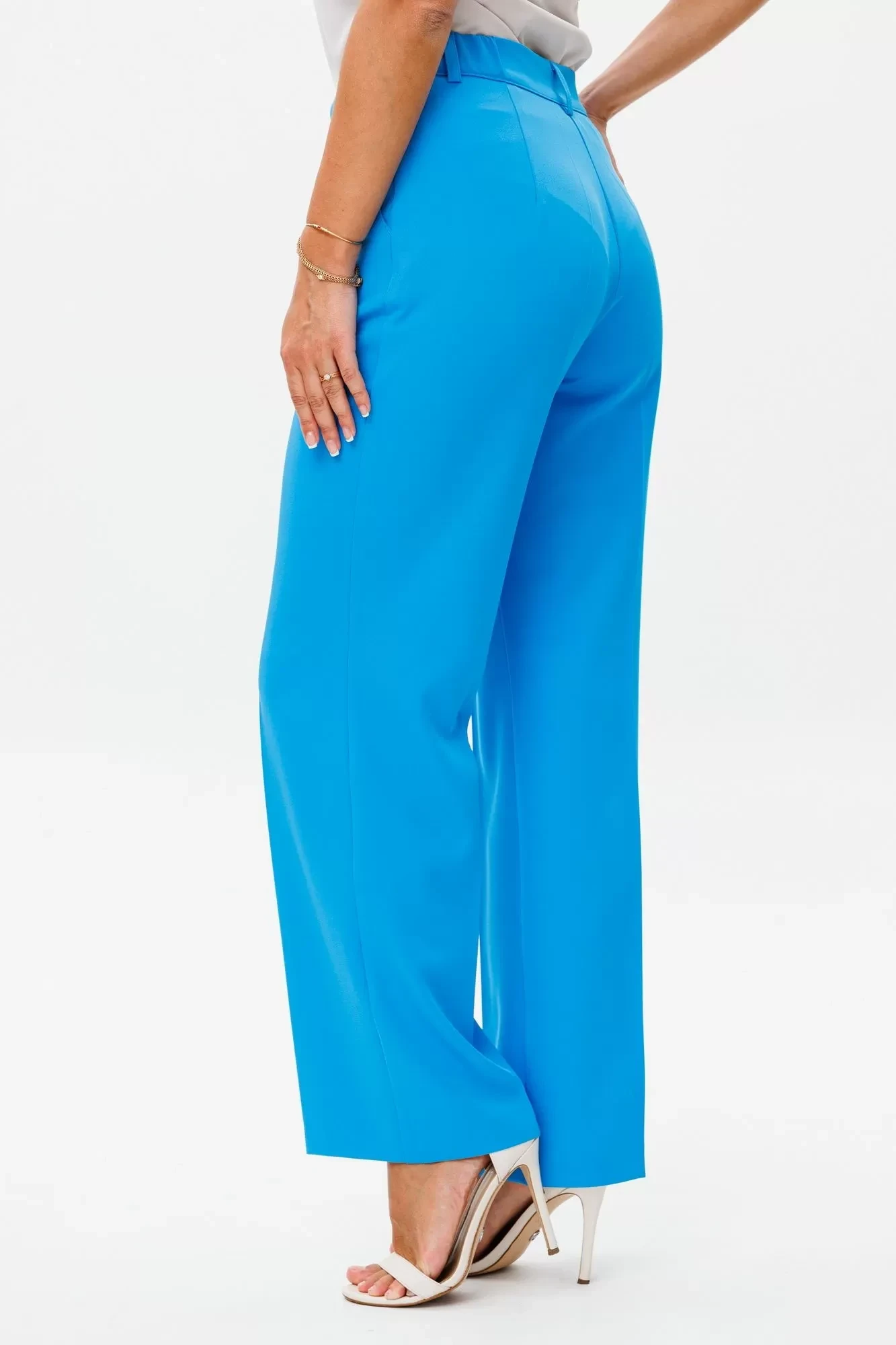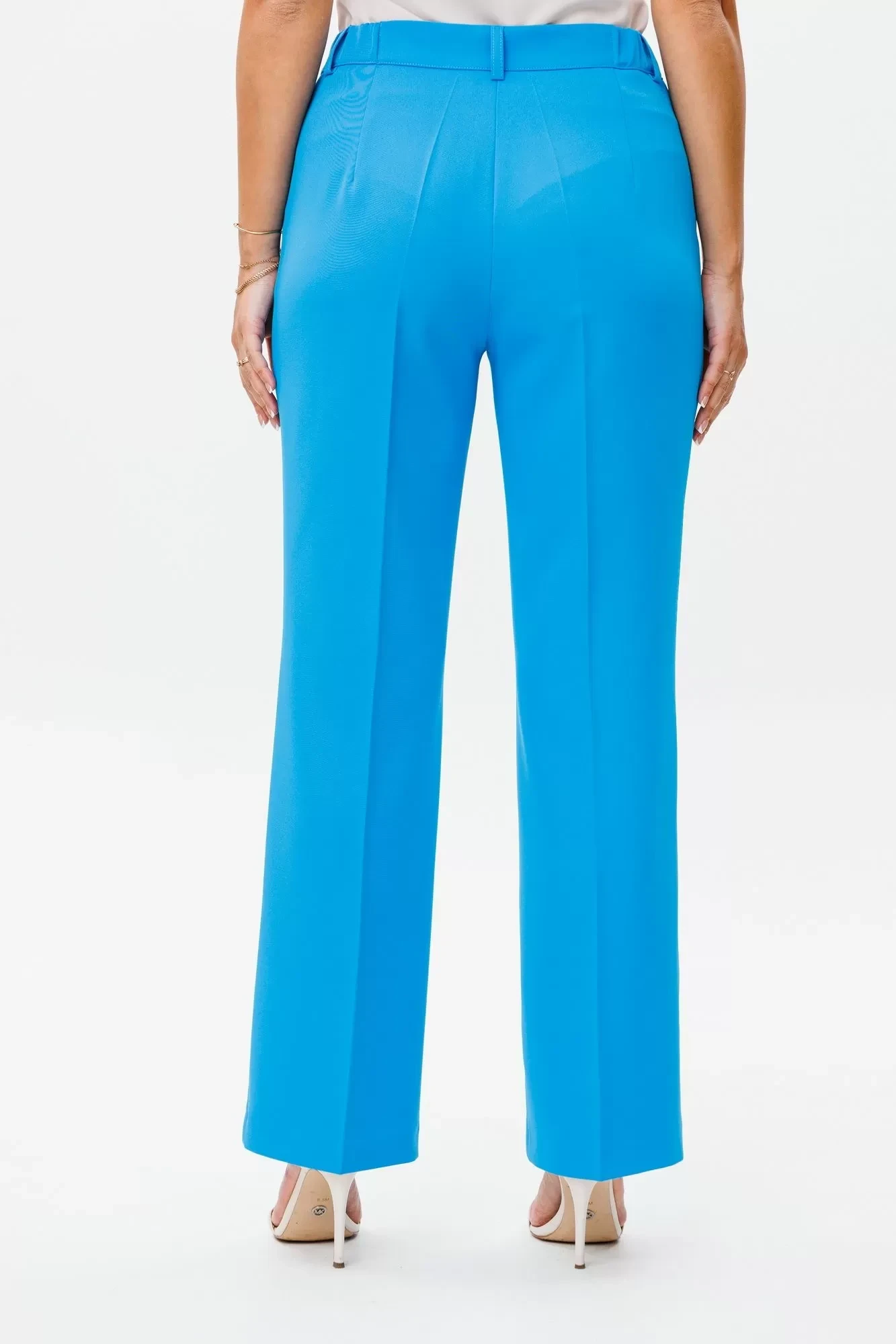 брюки прямые книзу, выполненные из костюмной ткани. Верх брюк на поясе со шлевками. В боковых частях пояса вставлена резинка. Застежка гульфик на молнии. В боковом шве карманы с наклонным входом. На брюках заутюжены стрелки. Фурнитура может быть изменена.