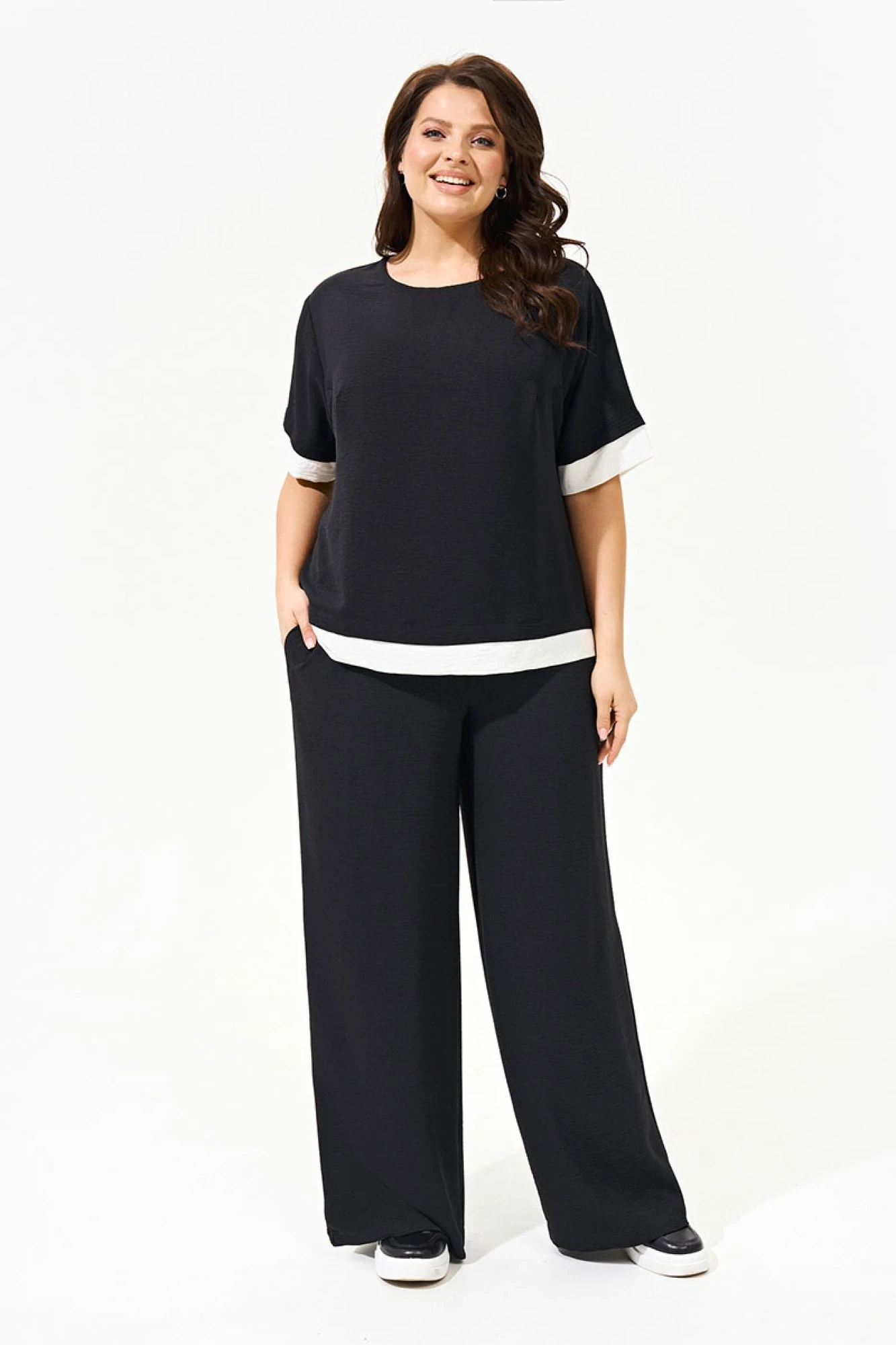 Брючный комплект из вискозы Ива 1553 черный двойка