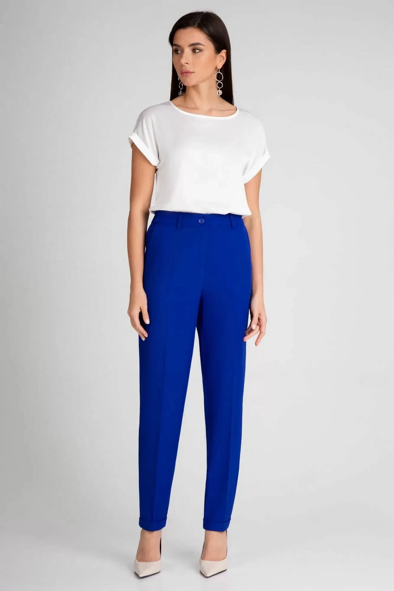 Пояс на резинке обеспечивает комфортную посадку брюк на разных типах фигур.