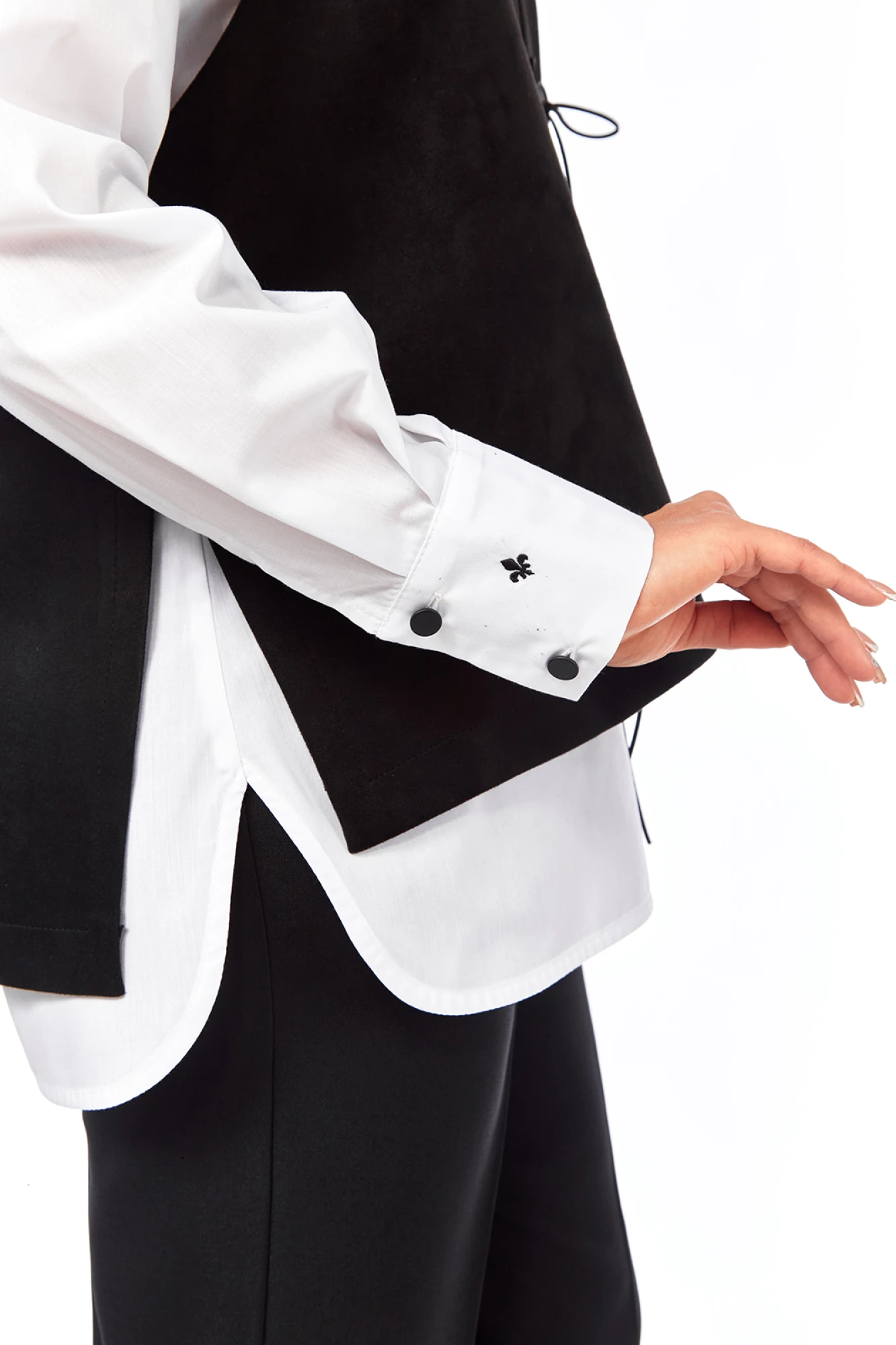 Длина жакета по спинке — 72 см, длина рукава — 63 см.