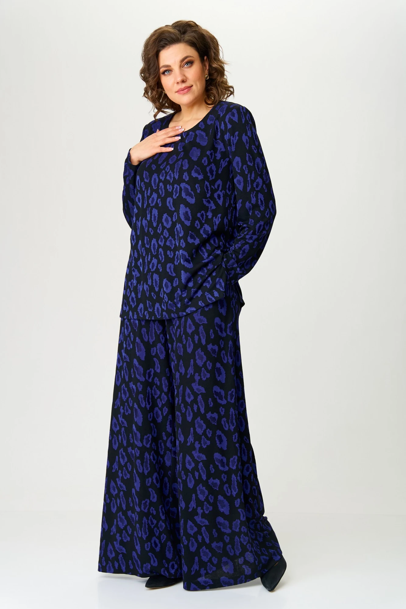 Брючный костюм Кокетка и К 1254 без украшений синий двойка