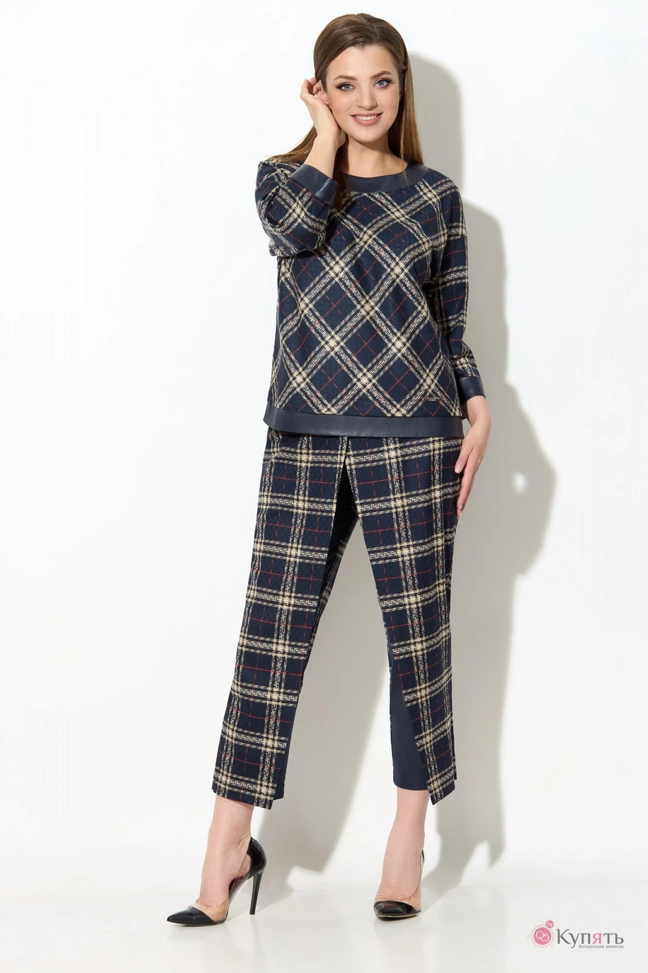 Брючный костюм Кокетка и К 861 синий+бежевая клетка