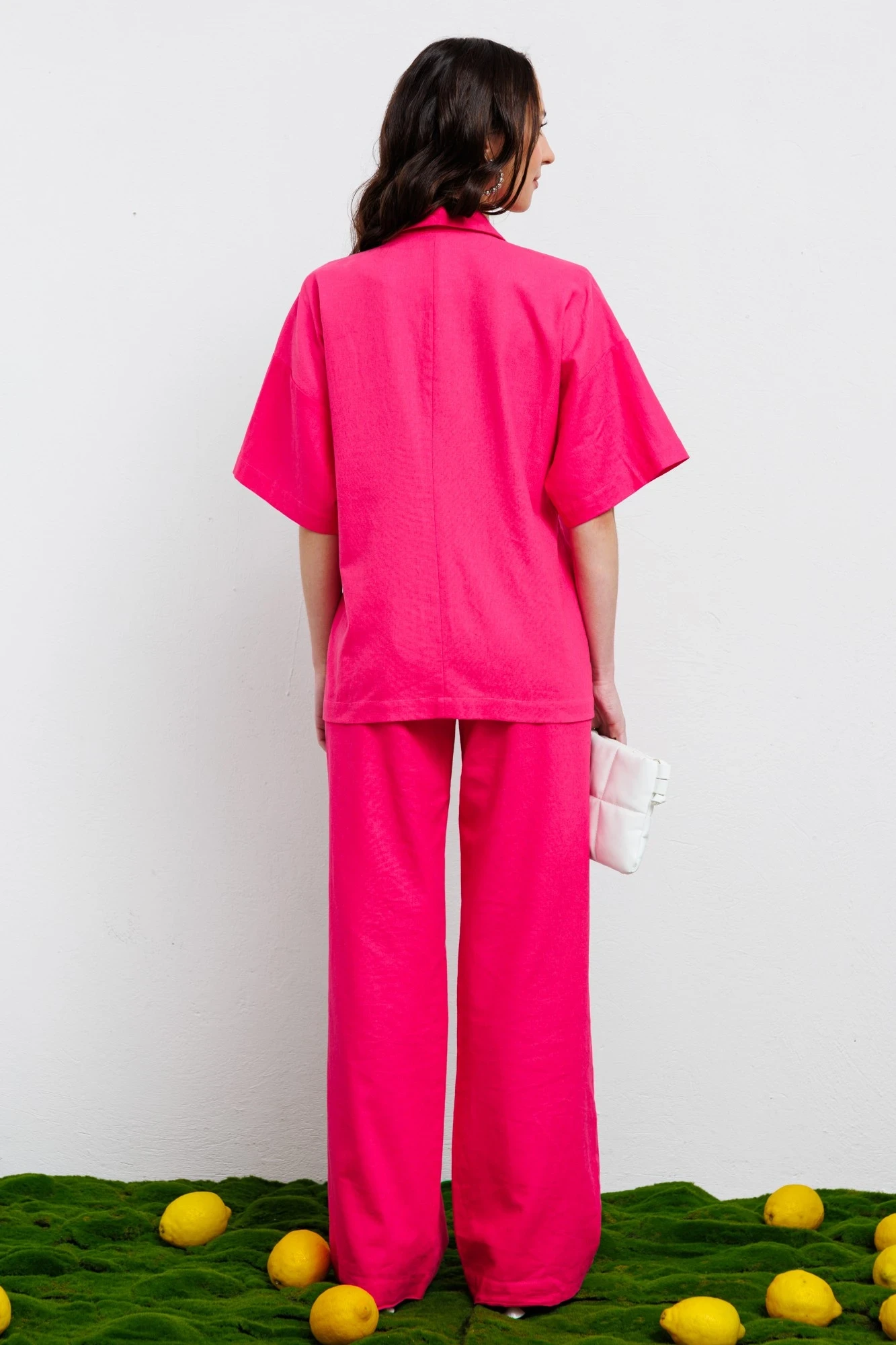 Льняной брючный костюм KOKOdea 2.22 фуксия двойка