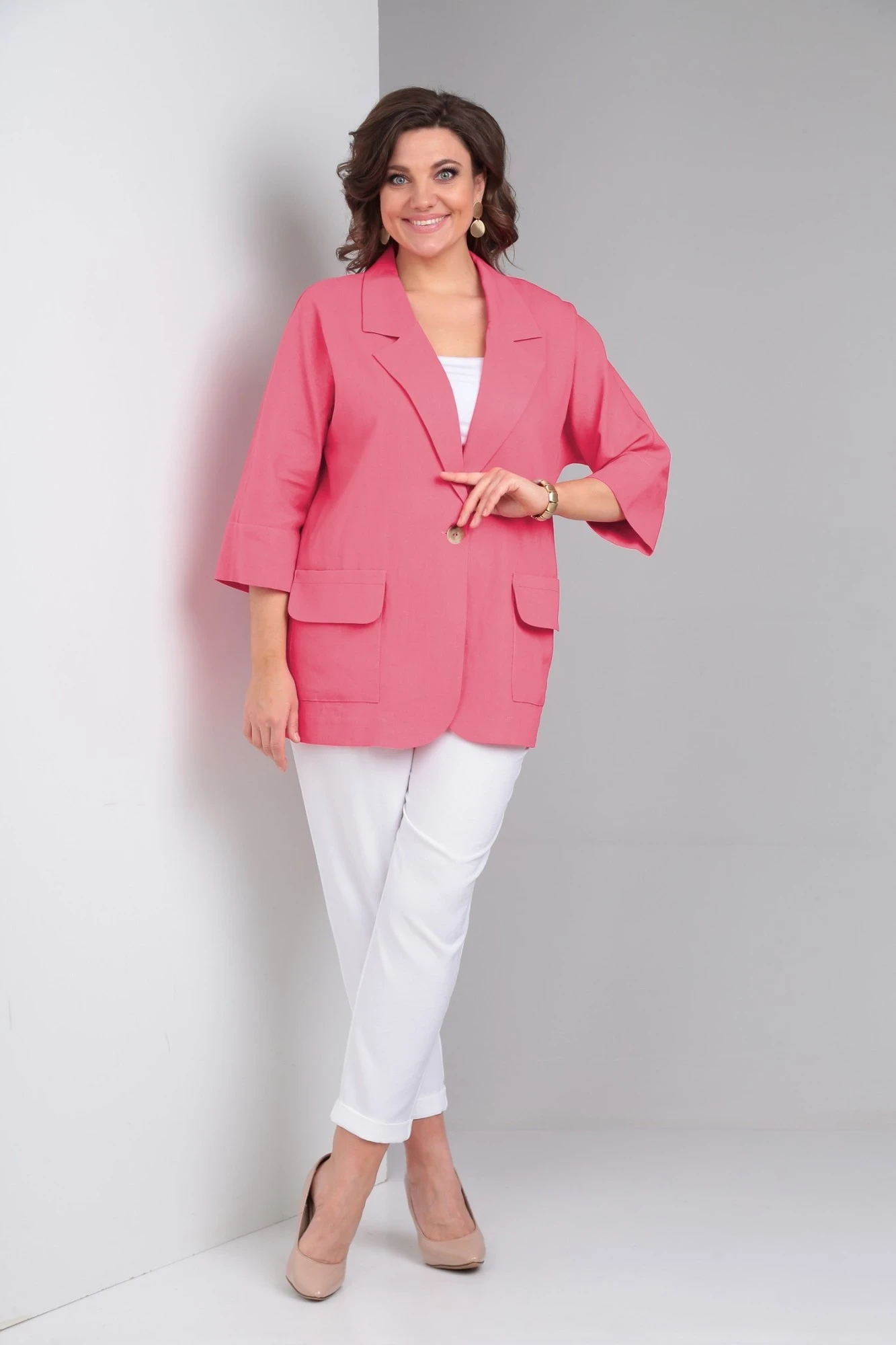 Брючный костюм Ладис Лайн 1487 коралл+белый