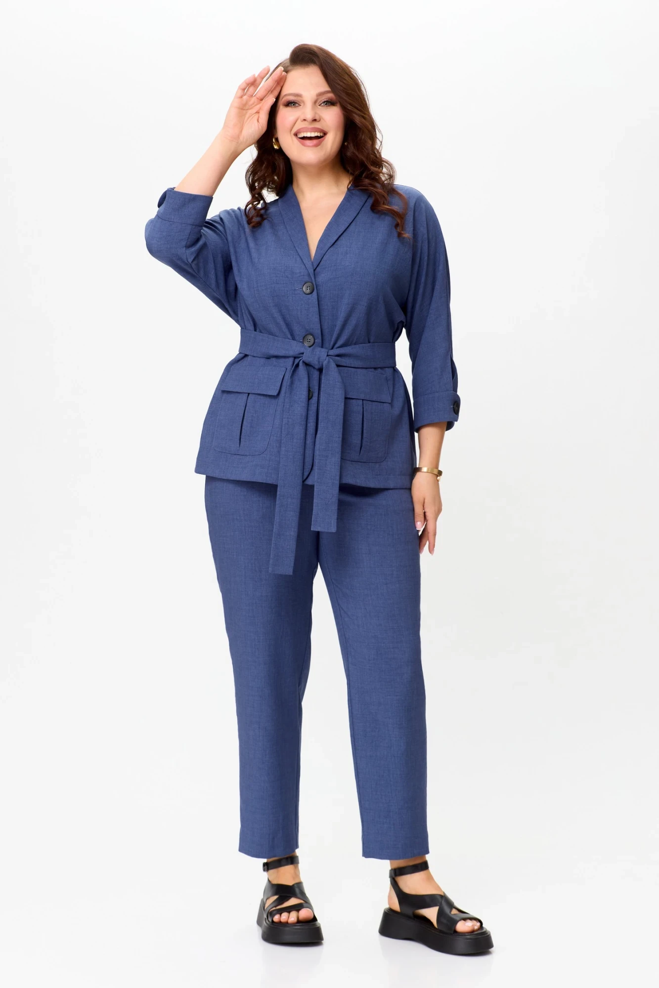 Льняной брючный костюм Ладис Лайн 1498