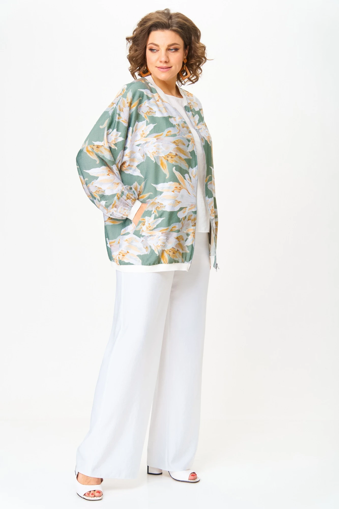 Брючный костюм Ладис Лайн 1567 цветы+белый тройка