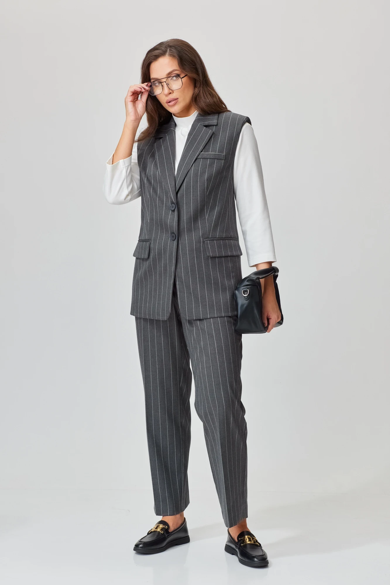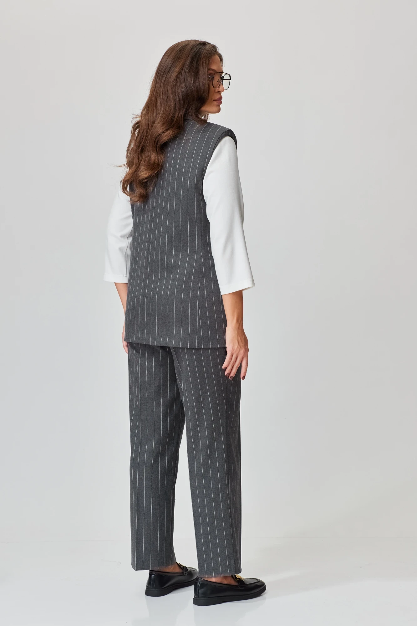 Брючный костюм LAIKONY 502 тройка серо-белый