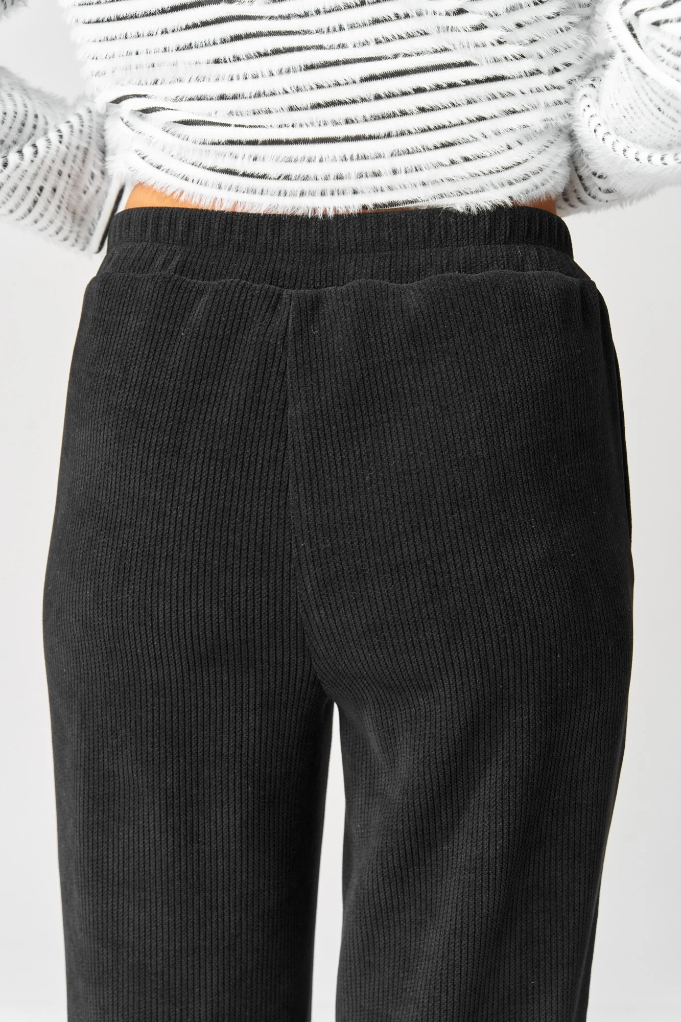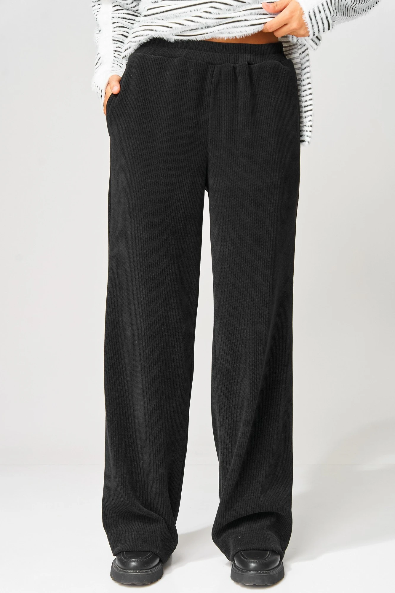 Брюки на талии, плотно облегающие вверху и прямые к низу. Пояс притачной, в пояс вставлена эластичная тесьма. На передних половинках брюк в боковых швах обработаны карманы.