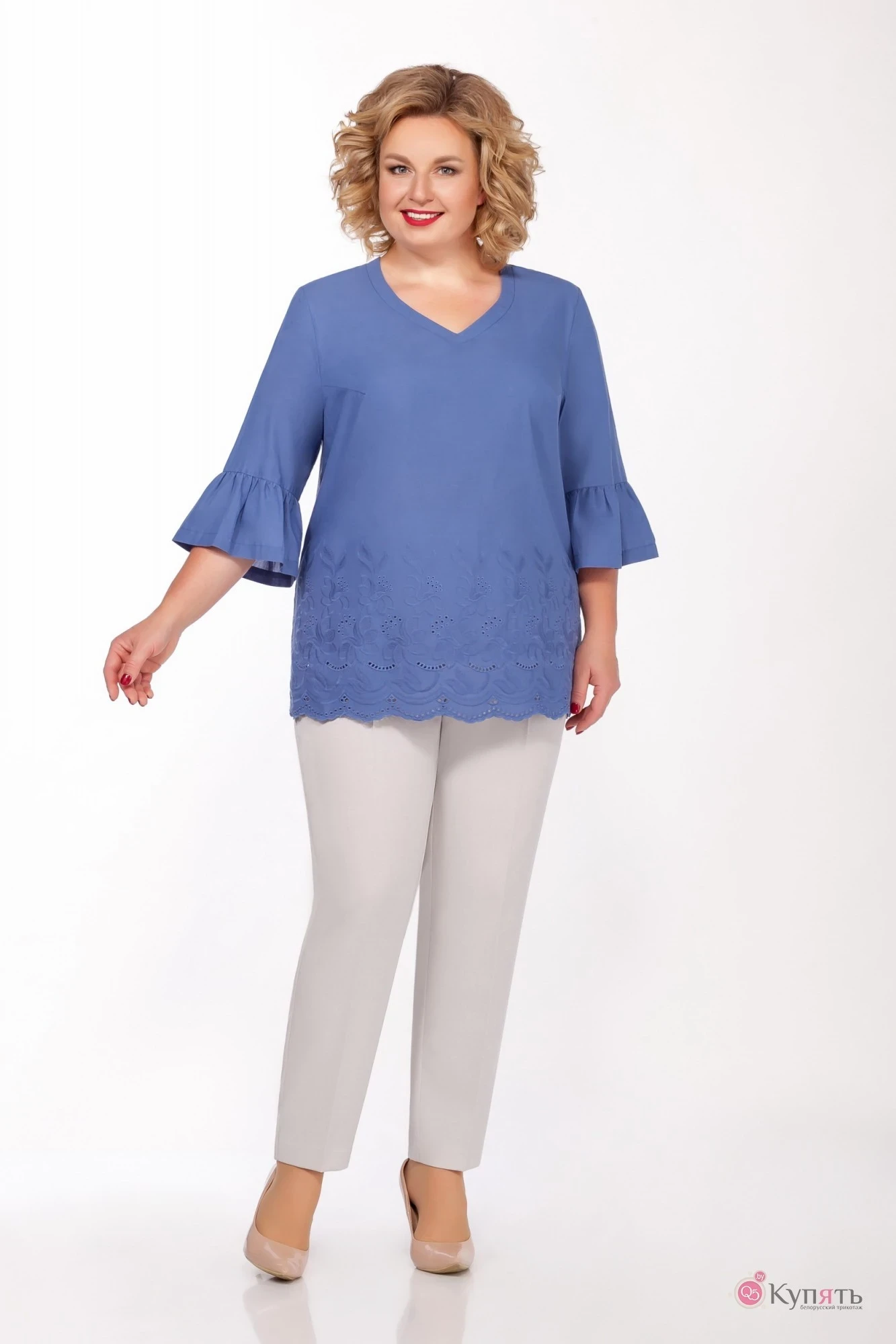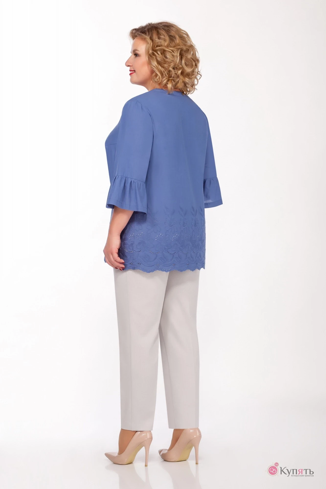 Брючный костюм ЛаКона 1296 голубой с песочным