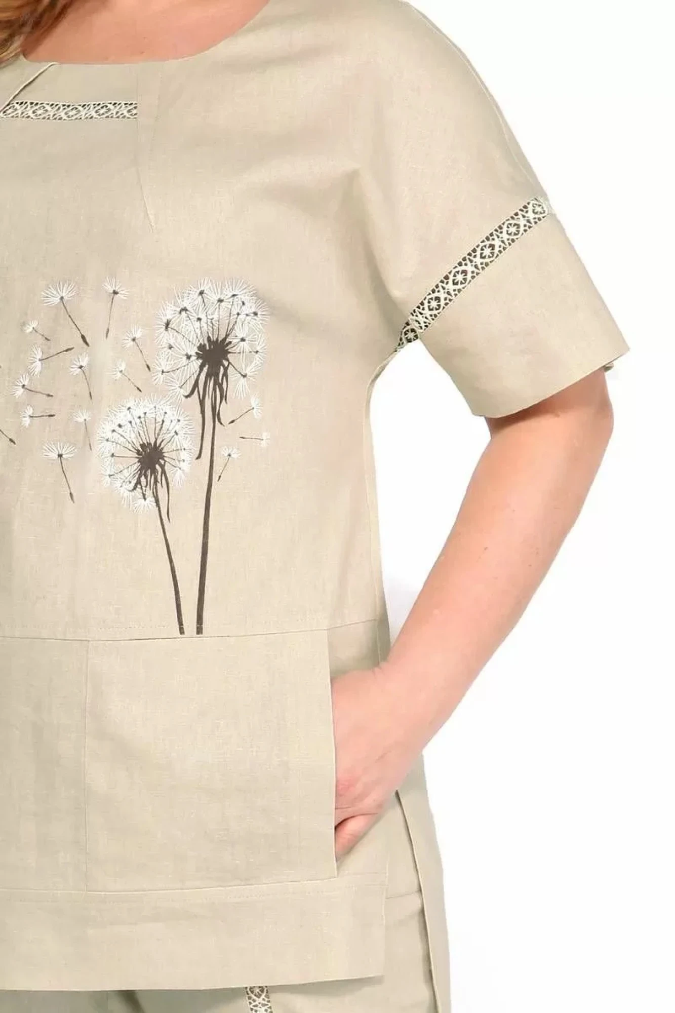 Брючный костюм ЛаКона 24С11378 льняной с одуванчикам двойка