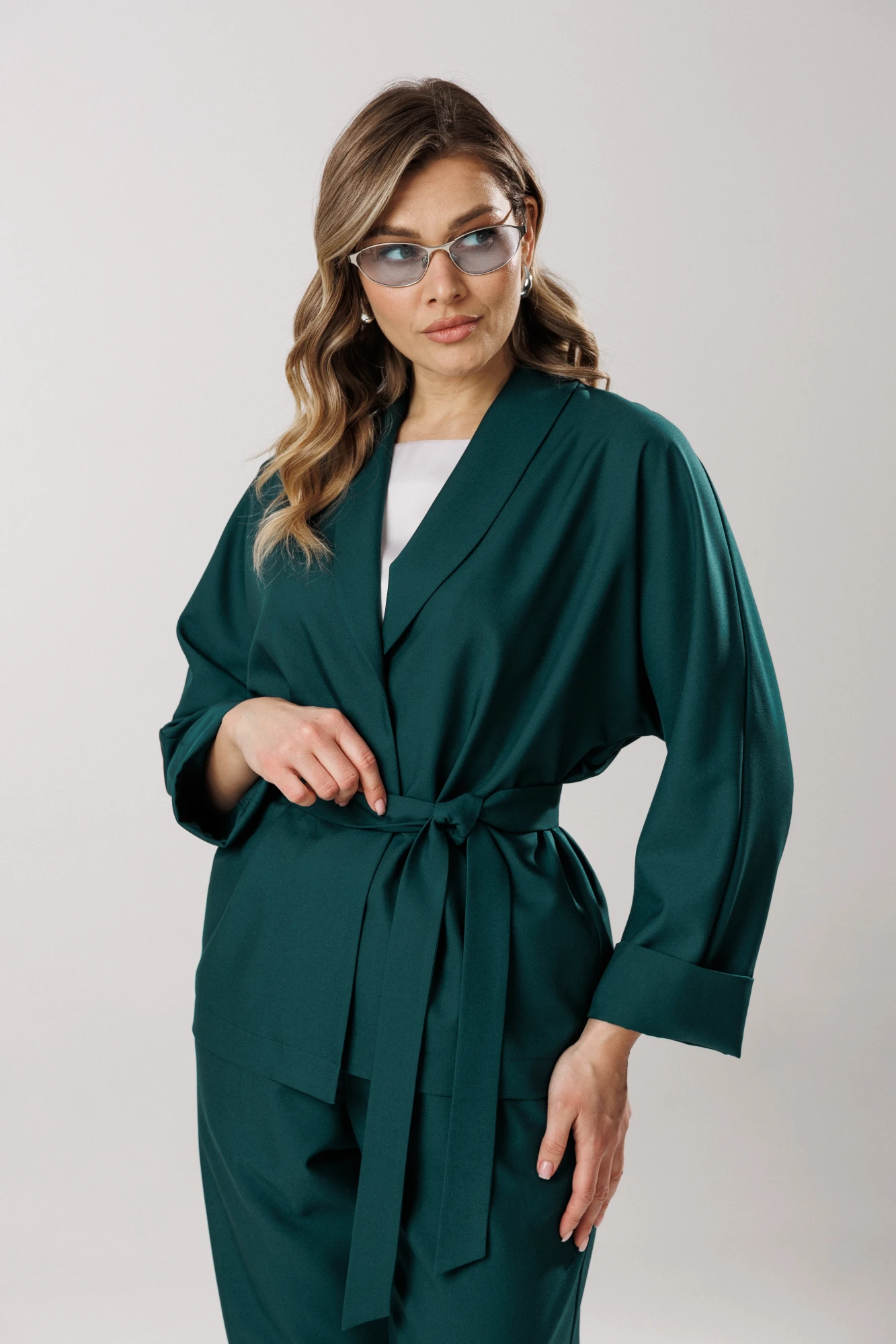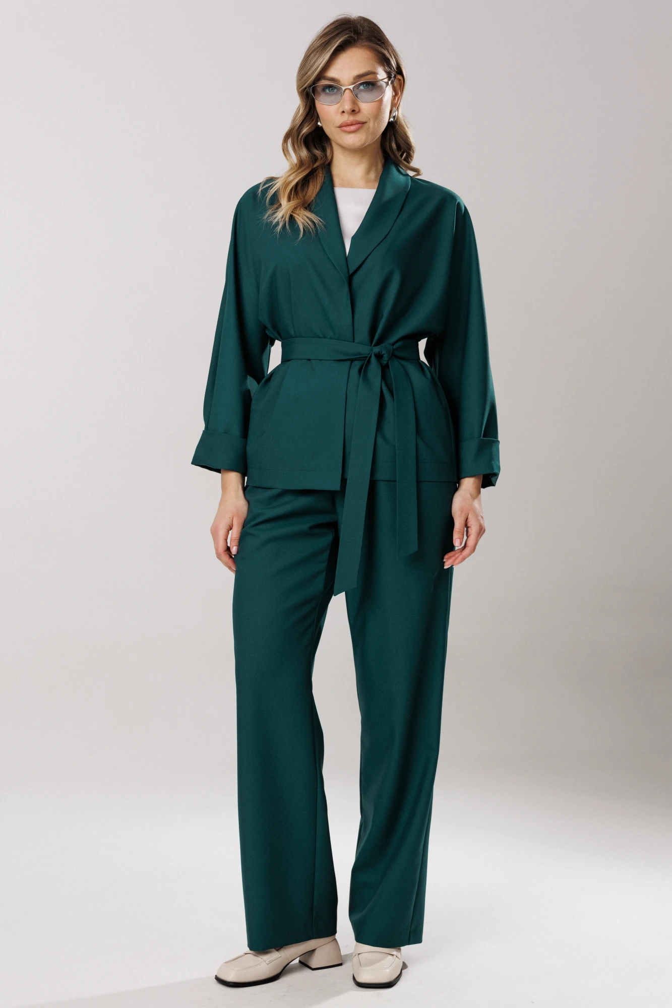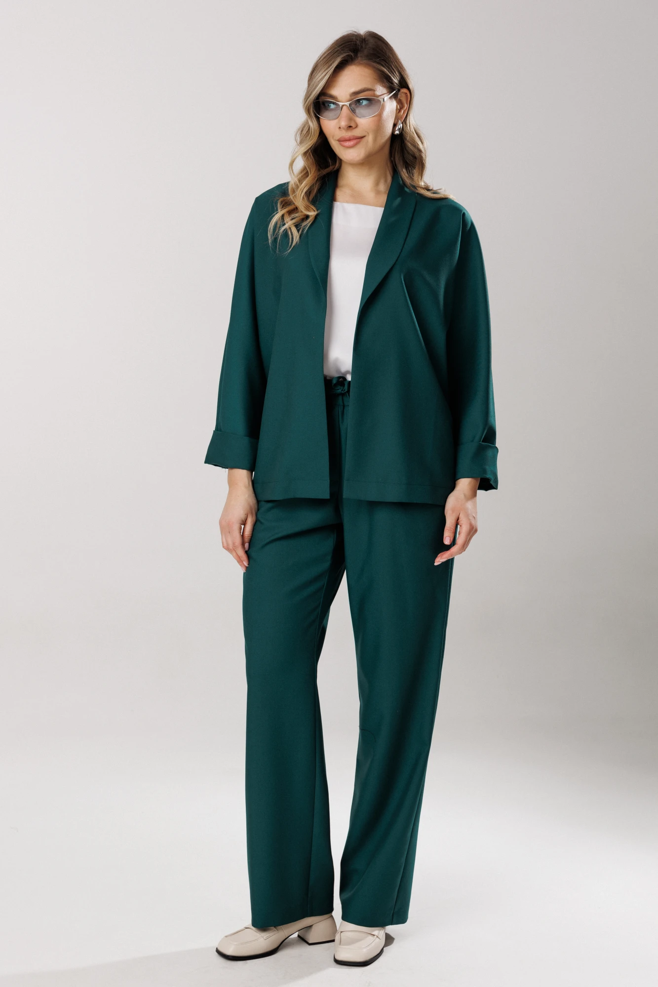 Брючный костюм Ларс Стиль 1202/1 изумрудный, молочный тройка