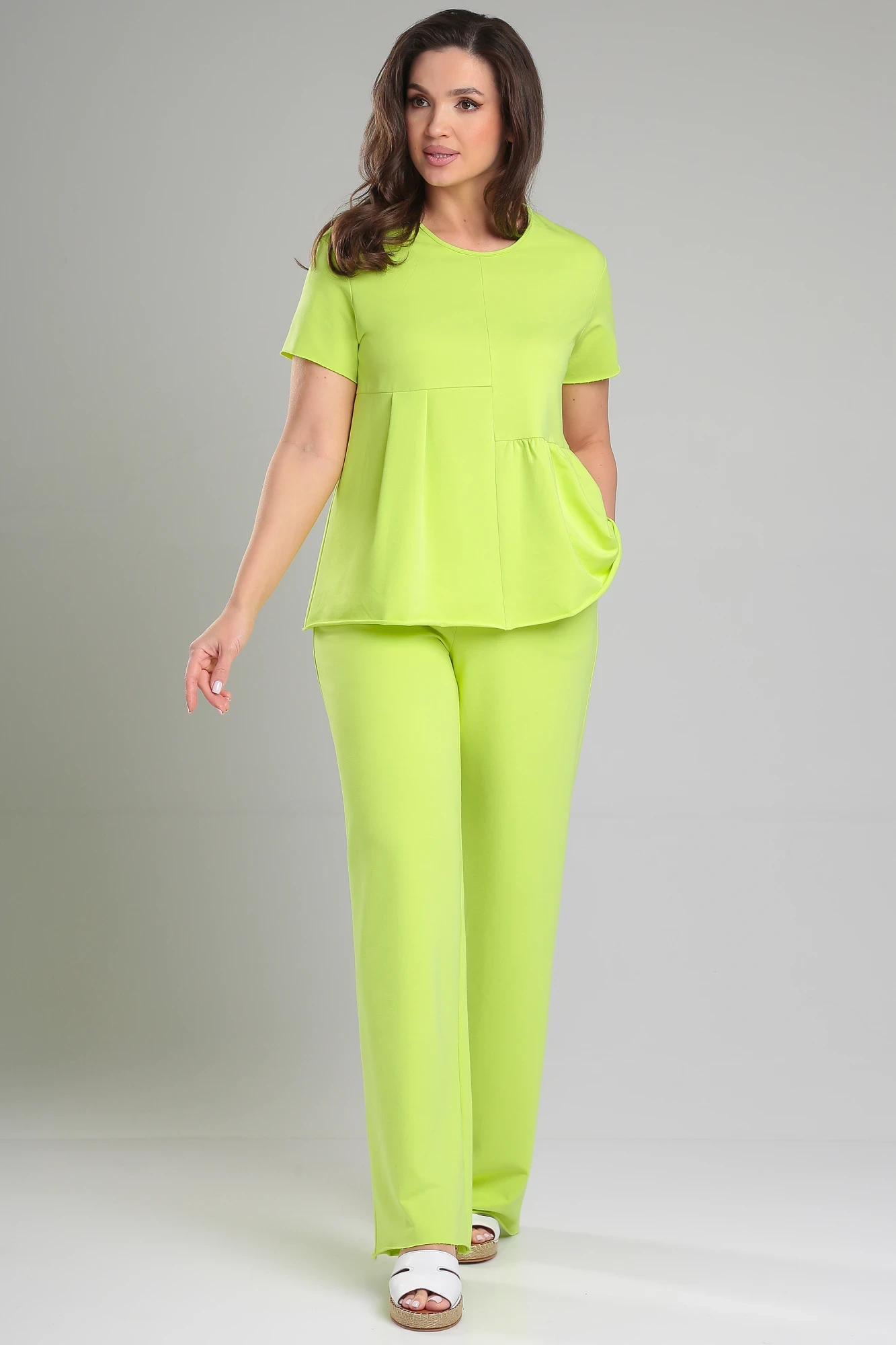 Хлопковый брючный комплект LeNata 20399 салатовый двойка