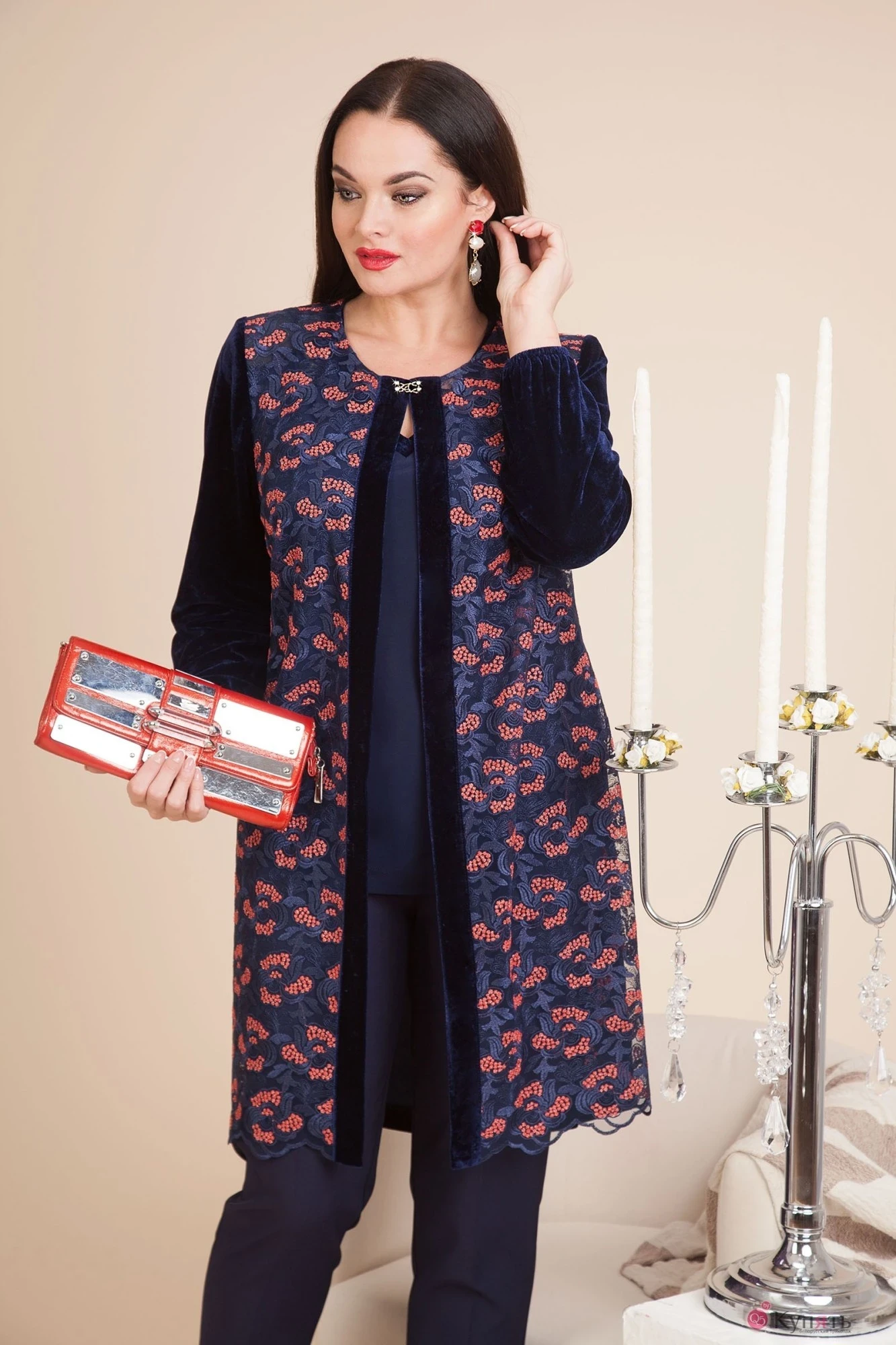 Брючный костюм Лилиана 602В рябина красный