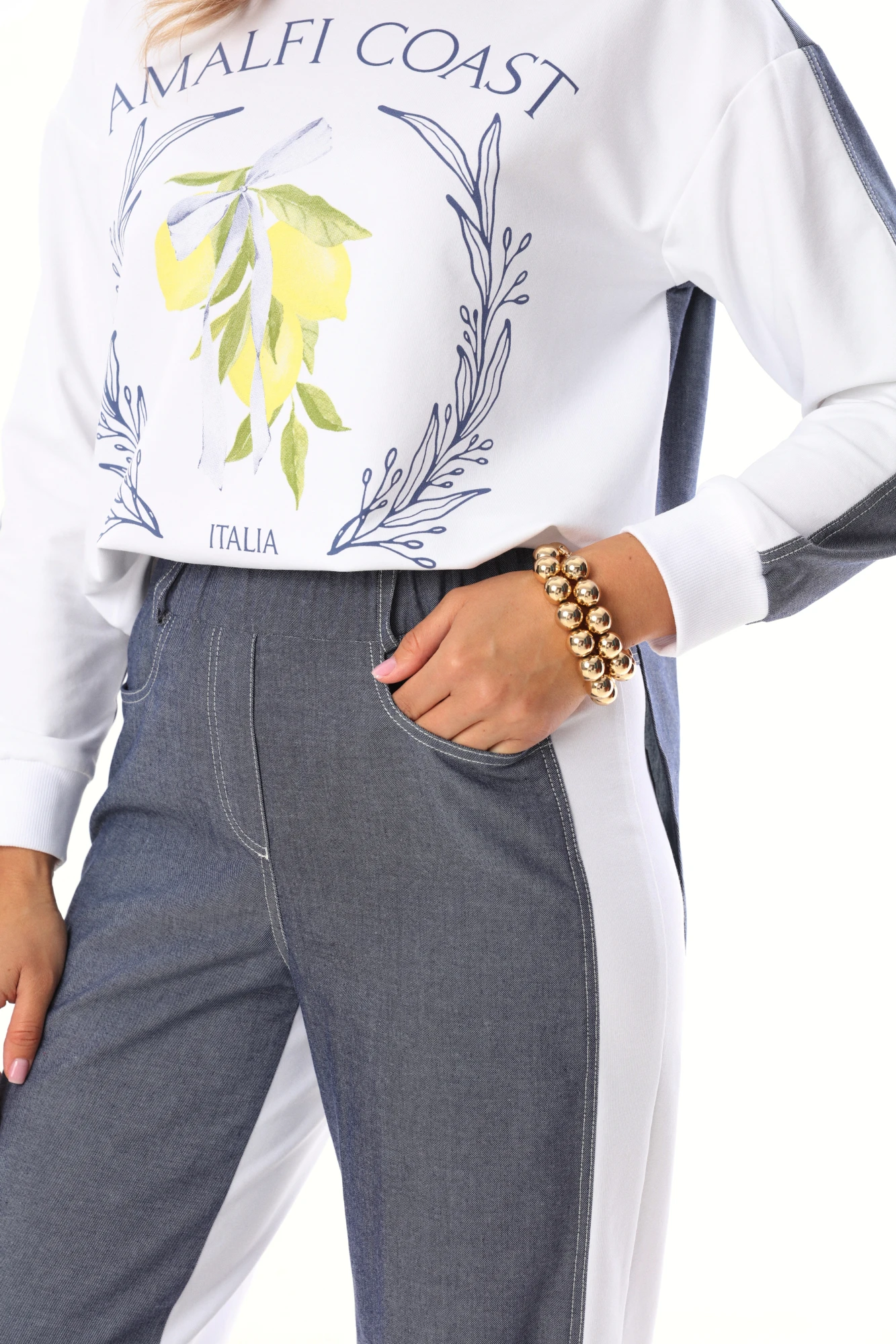 Длина брюк 112 см , длина свитшота по спинке 75 см.