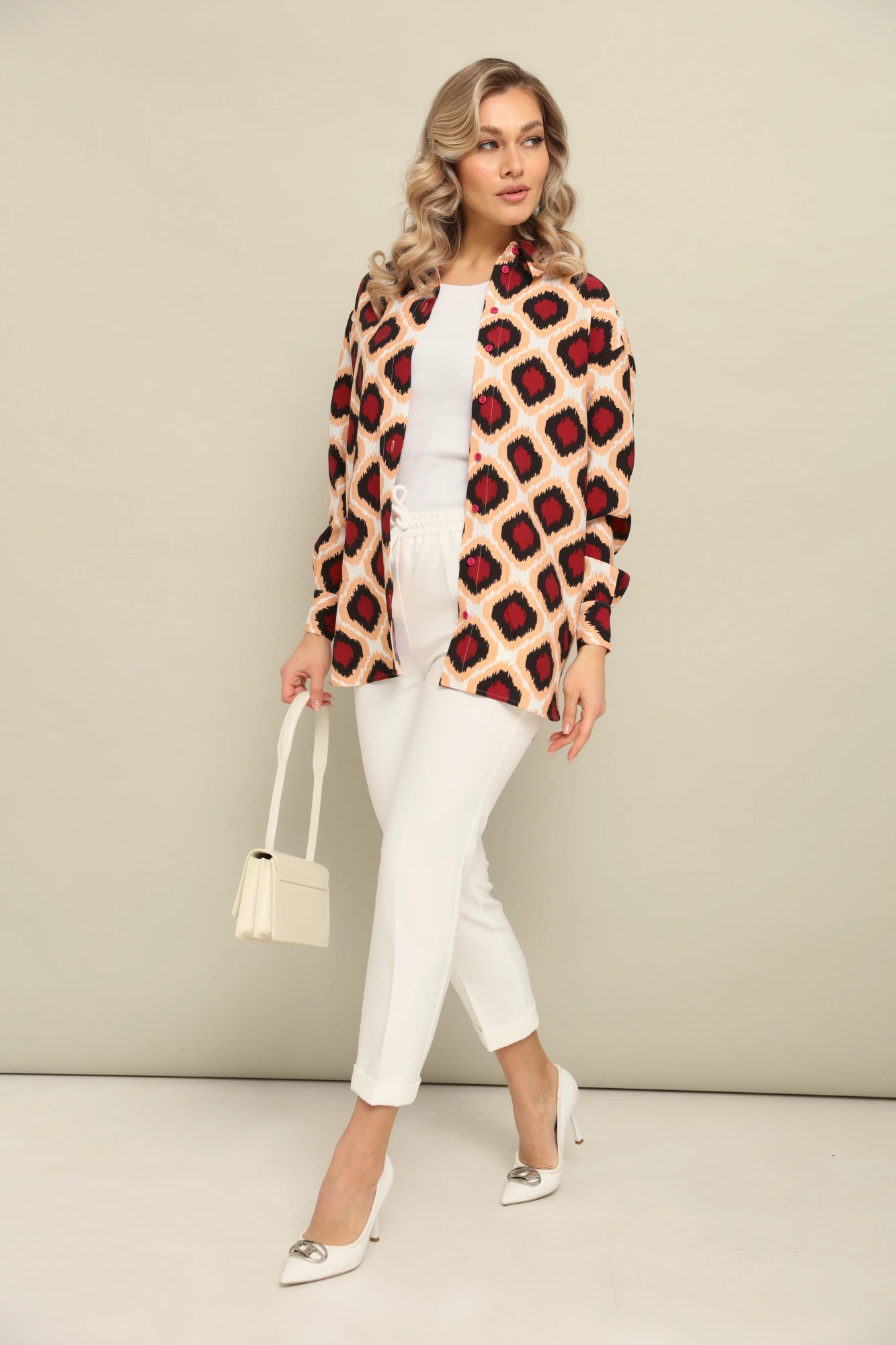 Брючный костюм LM К1440145 бордо и белый двойка