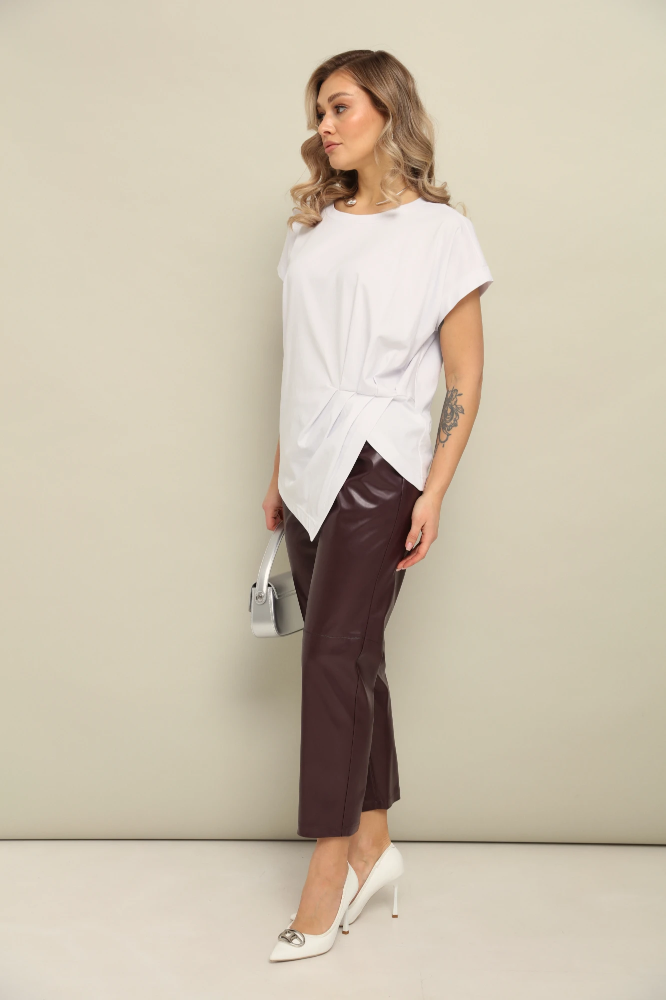 Лёгкая футболка с короткими цельнокроенными рукавами и оригинальным кроем. Низ футболки ассиметричный.