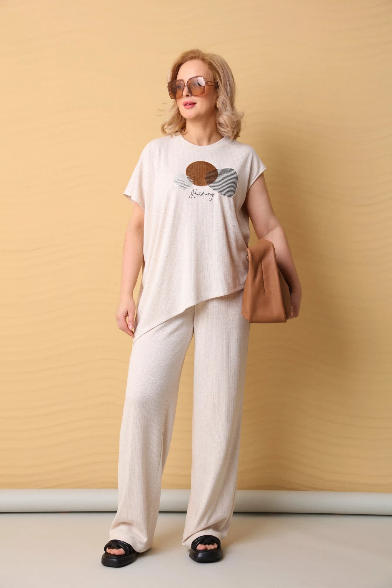 СОВЕТ ОТ СТИЛИСТА: можно разделить комплект и носить блузу с коричневыми или белыми брючками, из обуви выбрать трендовые сандалии, мюли или лоферы. Брюки также легко сочетать с объемной рубашкой длинной ниже линии бедер и получить комплект уже в другом настроении.