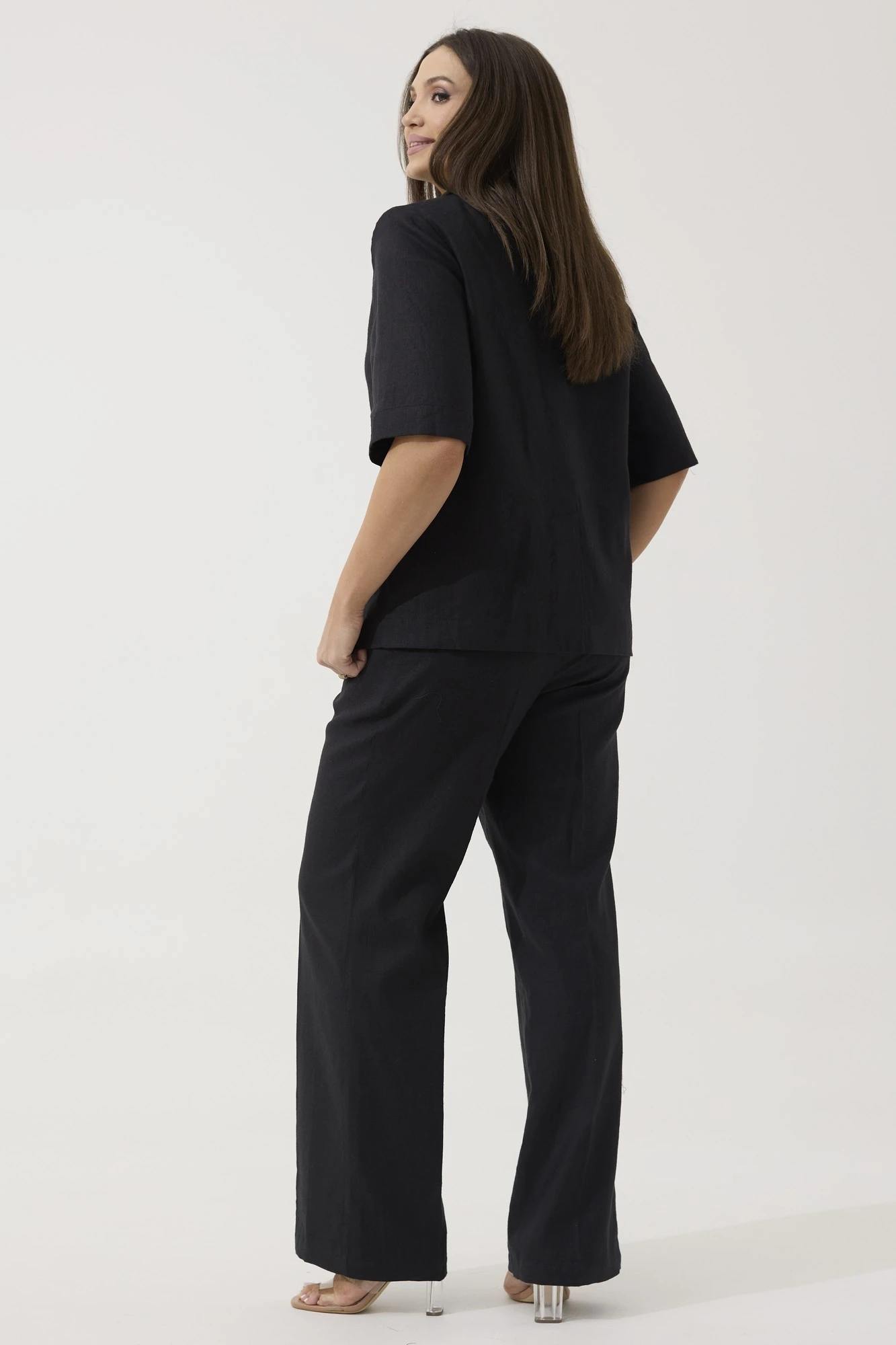 Брюки классические прямые. Пояс притачной с резинкой по спинке, застежка-гульфик на молнию и петлю с пуговицей. Перед с функциональными карманами с диагональным входом.