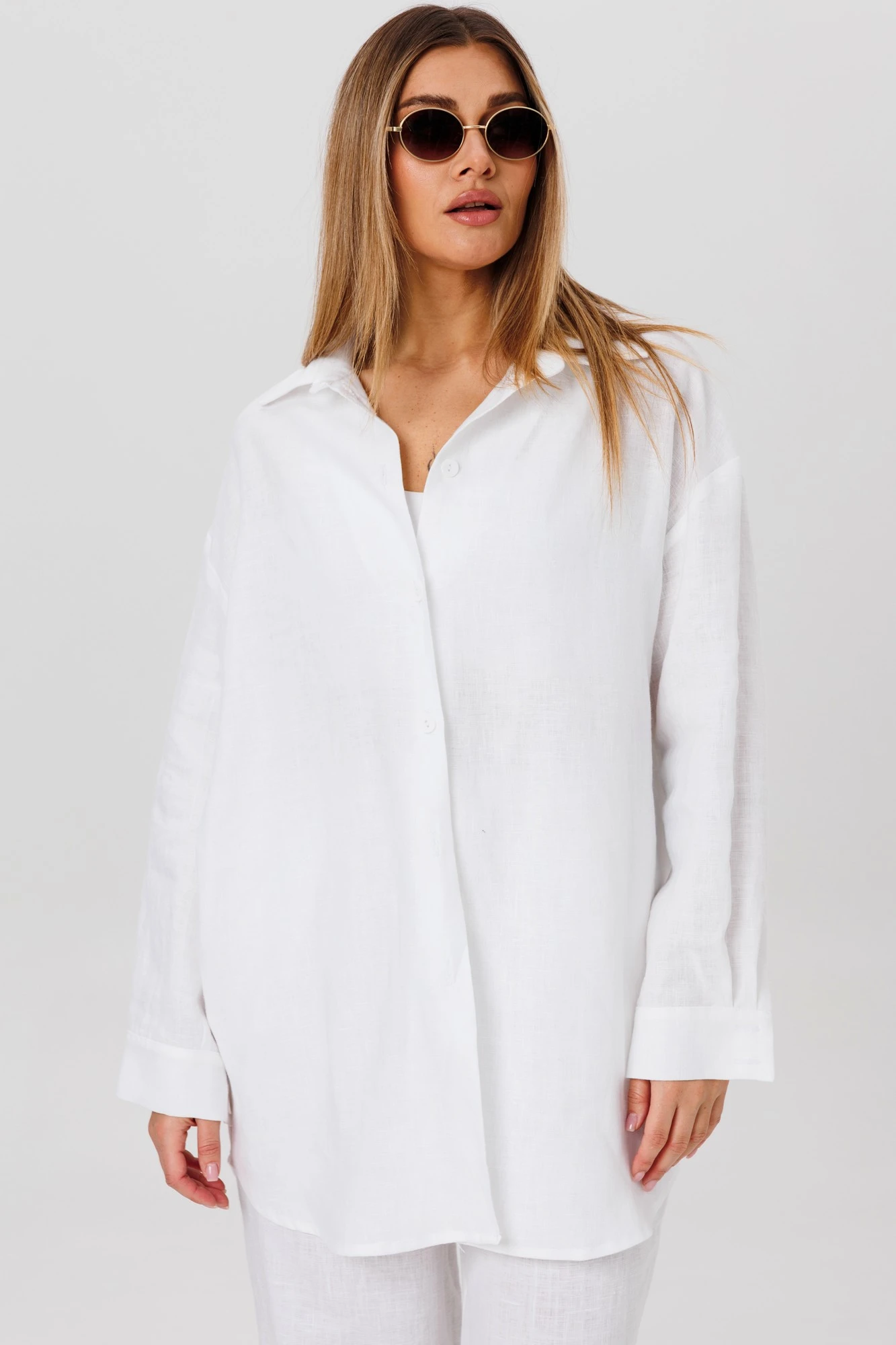 Рубашка свободного силуэта. Воротник рубашечного типа. Застежка центральная на петли и пуговицы. Рукав втачной, длинный, снизу рукава притачная манжета, застегивающаяся на петлю и пуговицу. Линия плеча спущена. Спинка с кокеткой. Низ фигурный с удлиненной спинкой.