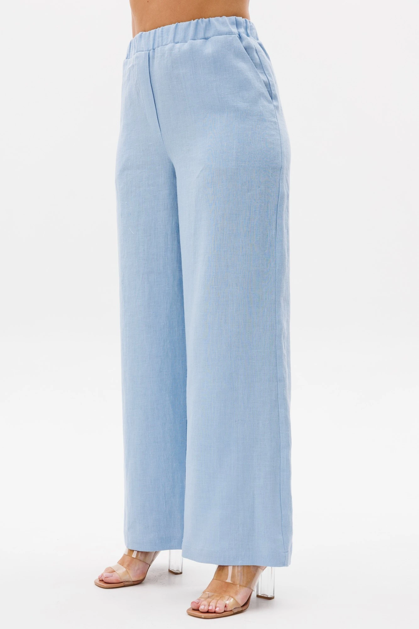 Брюки-палаццо. Пояс притачной на резинке. Передняя половинка брюк с функциональными карманами с диагональным входом.