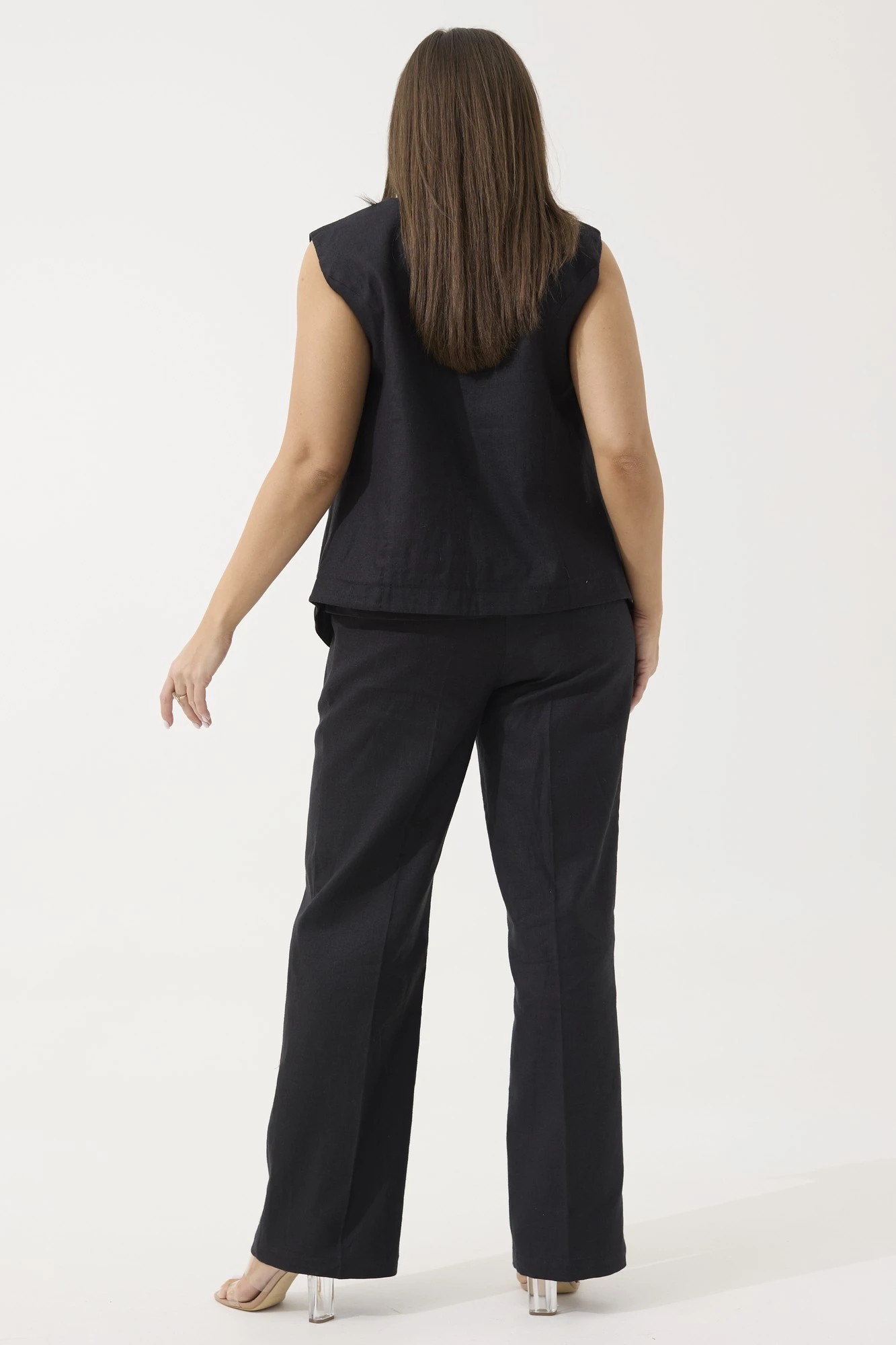 Брюки классические прямые. Пояс притачной с резинкой по спинке, застежка-гульфик на молнию и петлю с пуговицей. Перед с функциональными карманами с диагональным входом.