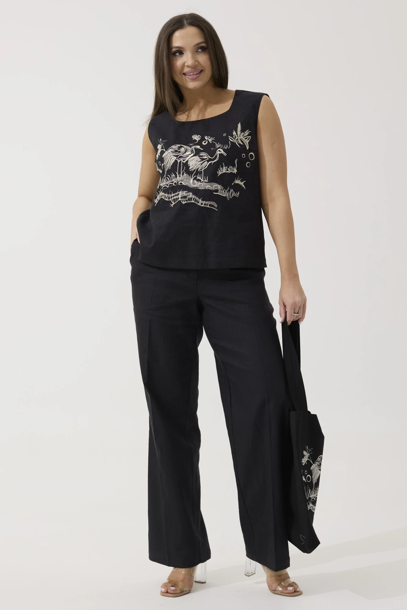 Костюм выполнен из качественного белорусского льняного полотна (пр-во Орша). Ткань не тянется.