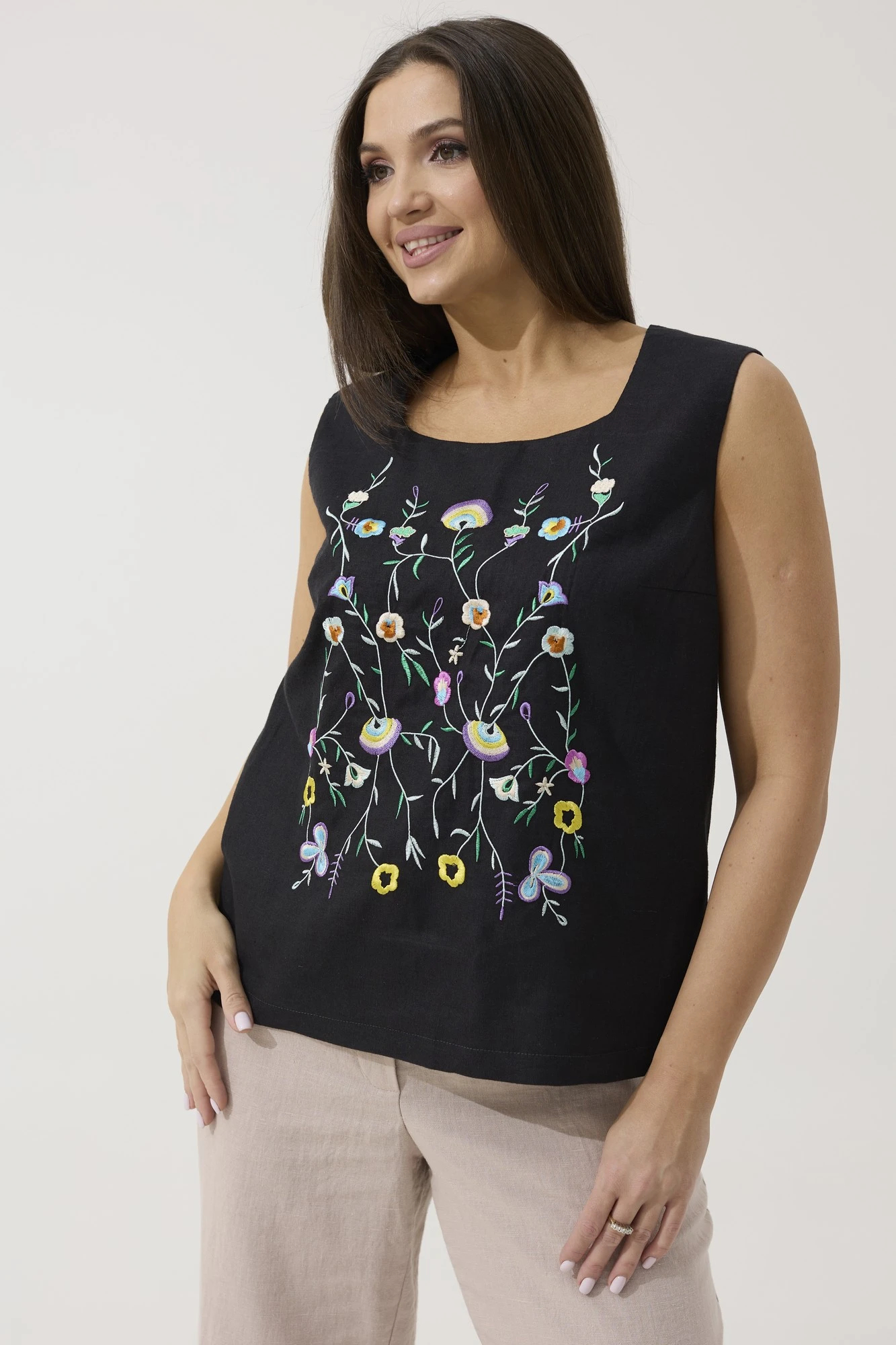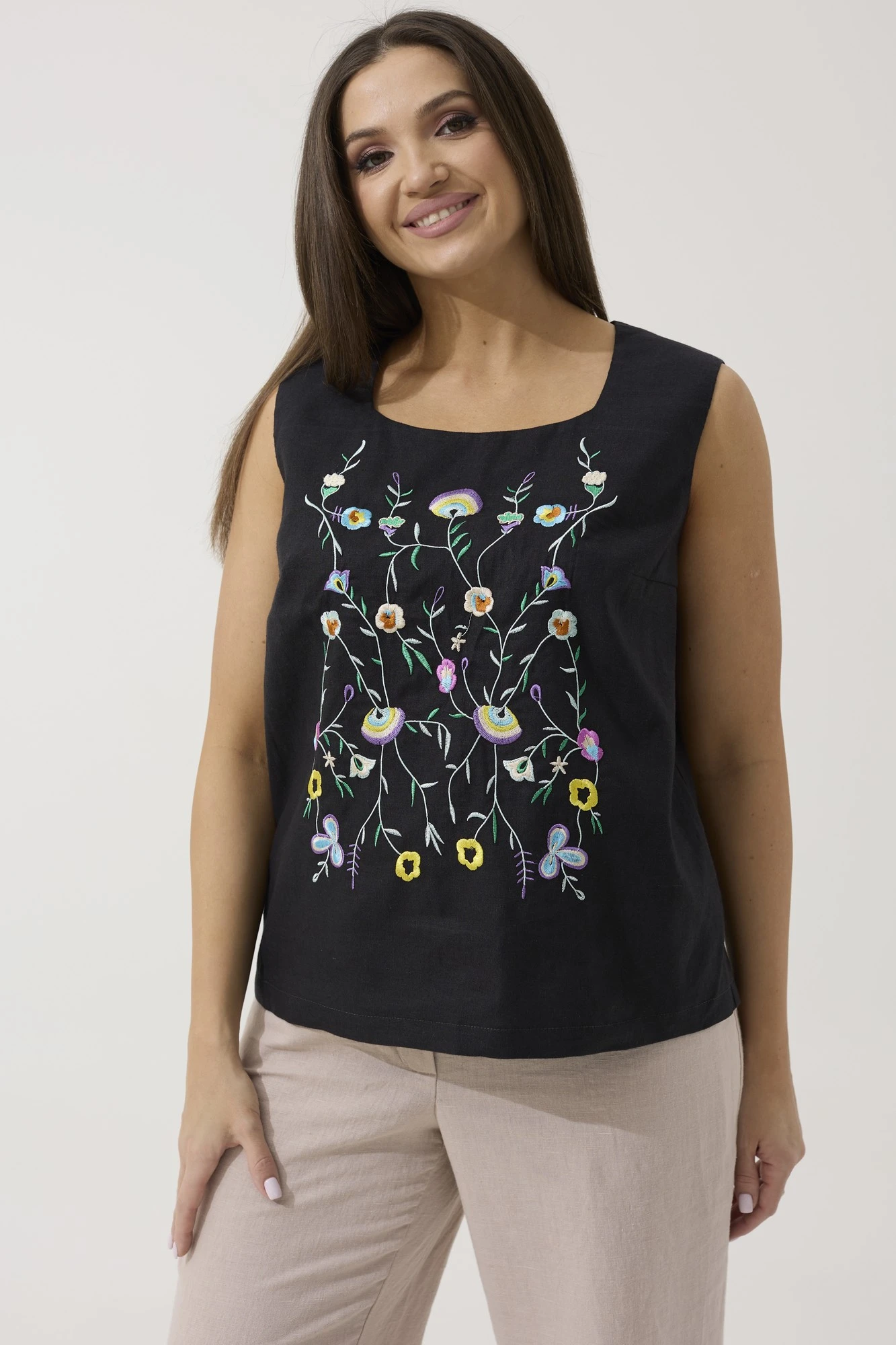 Полочка и спинка топа цельные. Спереди топа дизайнерская вышивка.