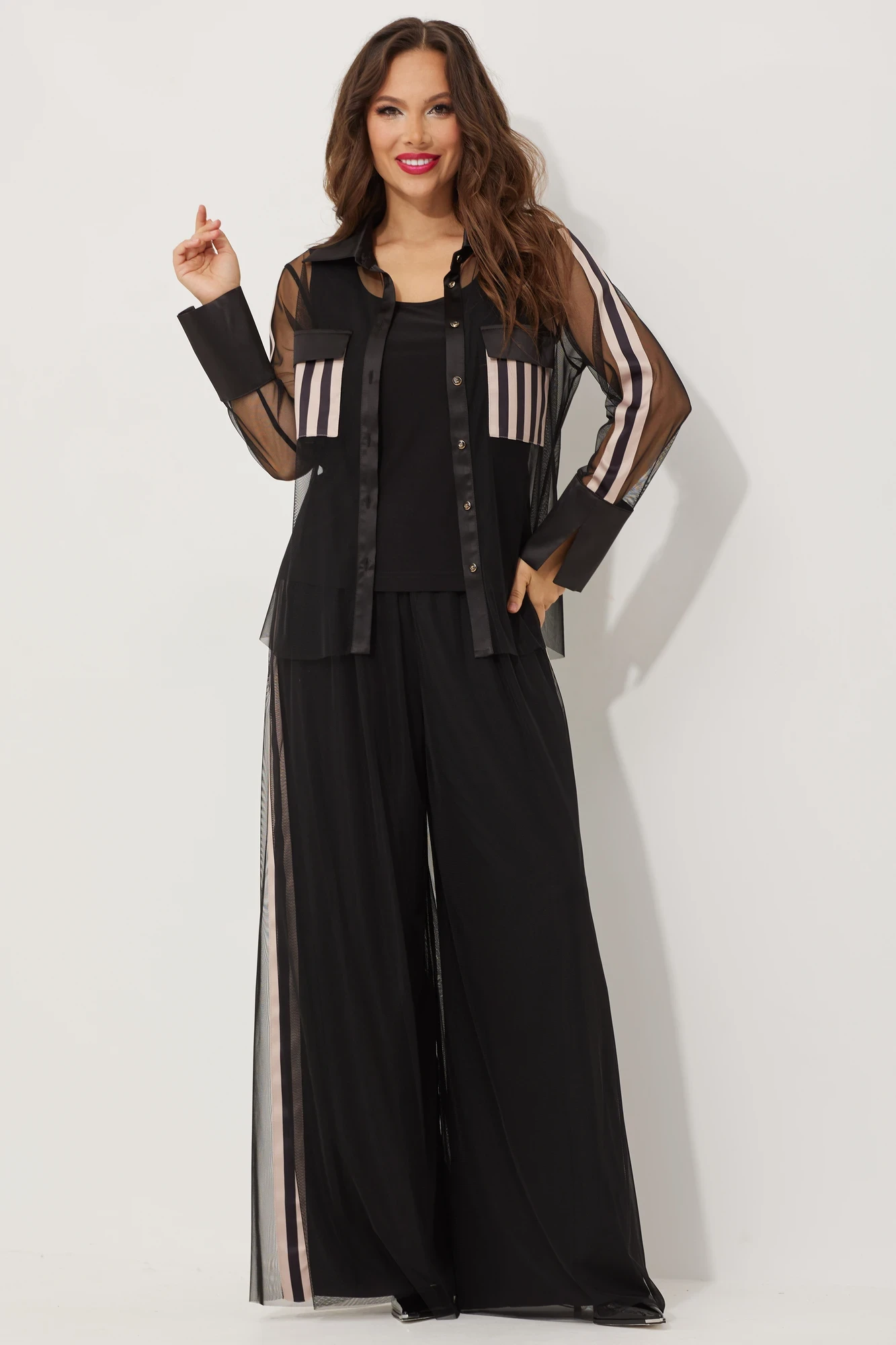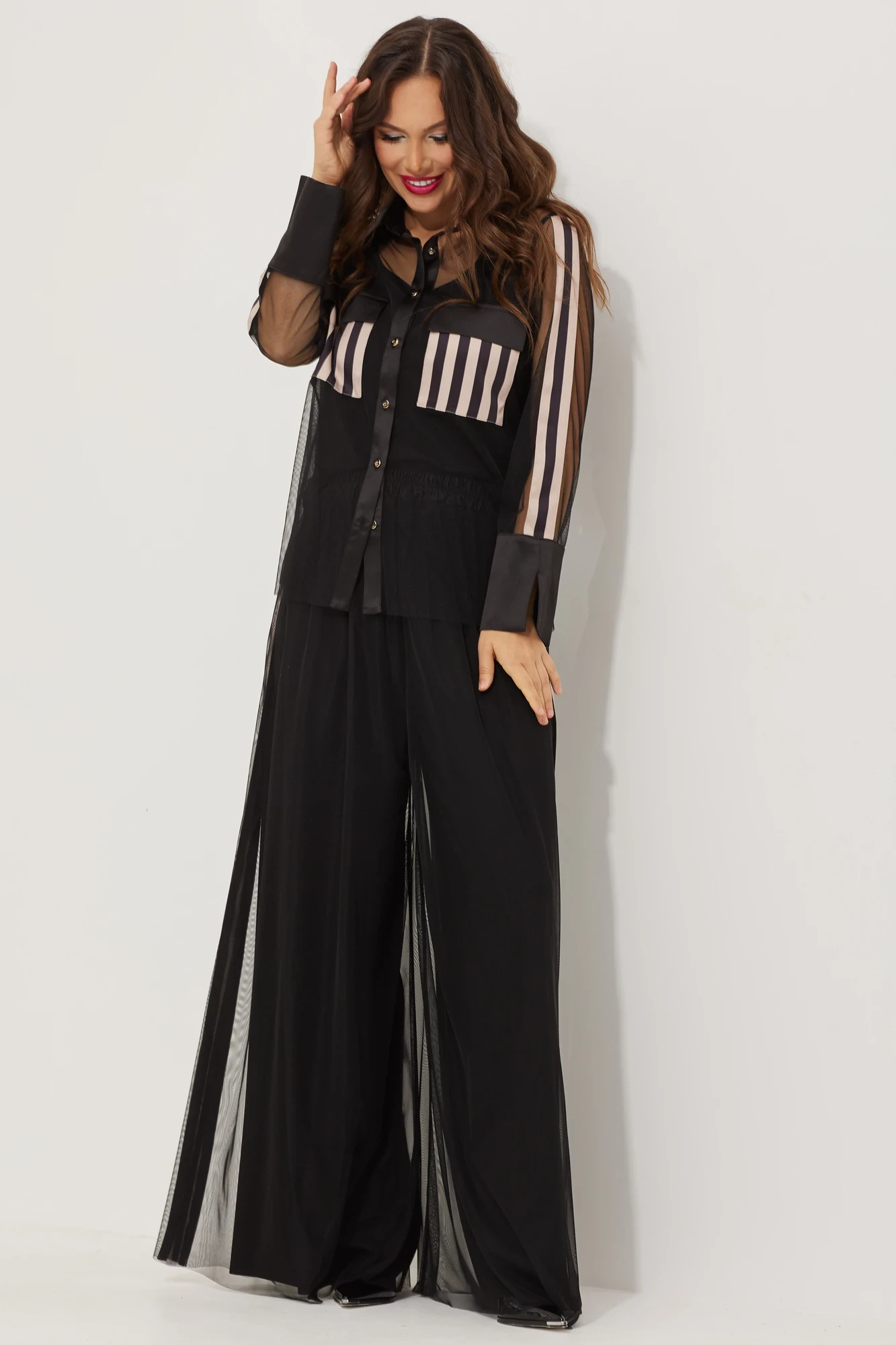 Брючный костюм Магия Моды 2476 черный+ пудровый