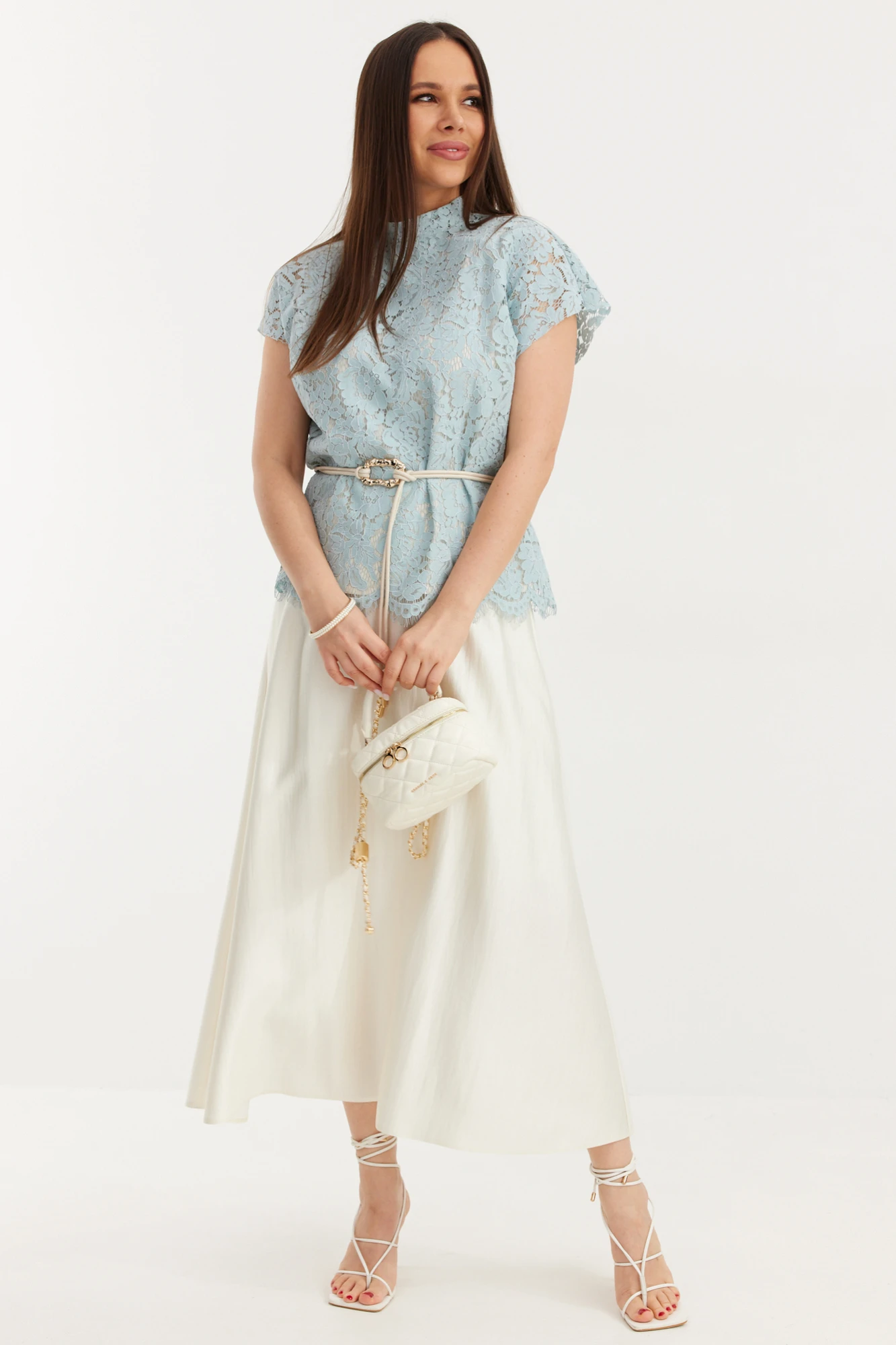 Брючный костюм Магия Моды 2706 голубой, молочный двойка