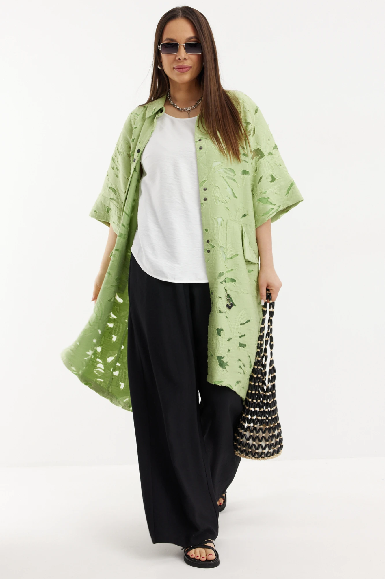 Брючный костюм Магия Моды 2711 лайм, черный, белый тройка