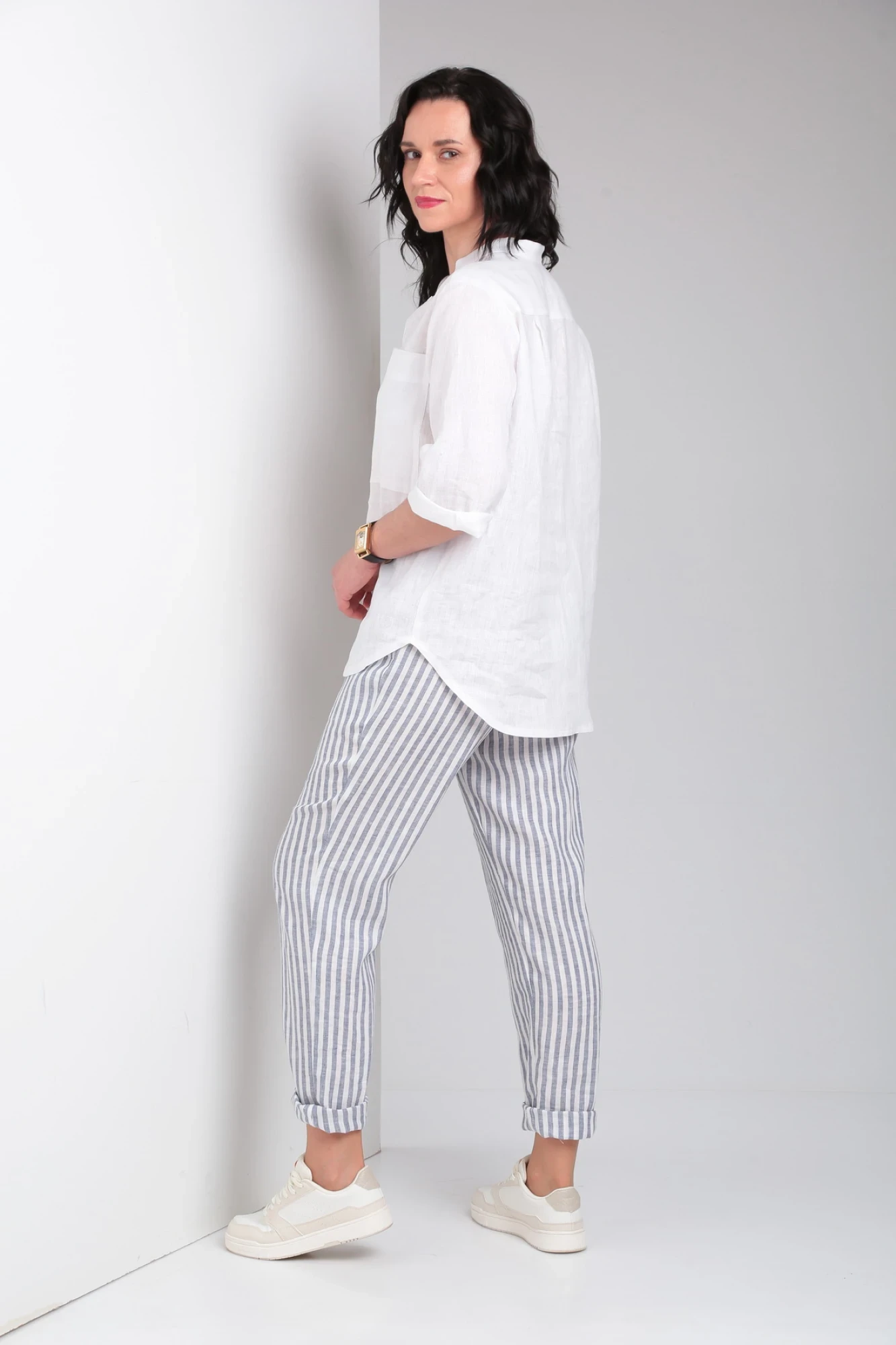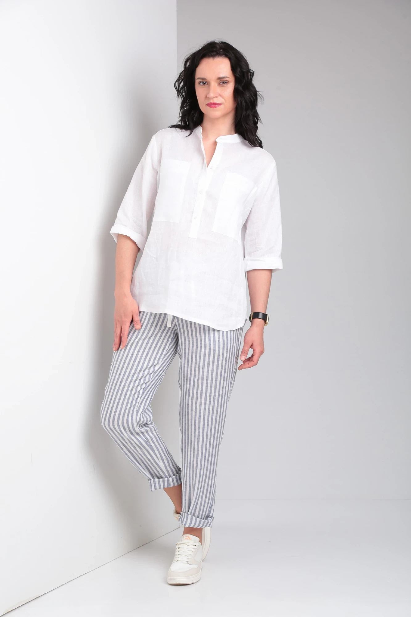 Брючный костюм Ma Vie 663 бело-серая полоска