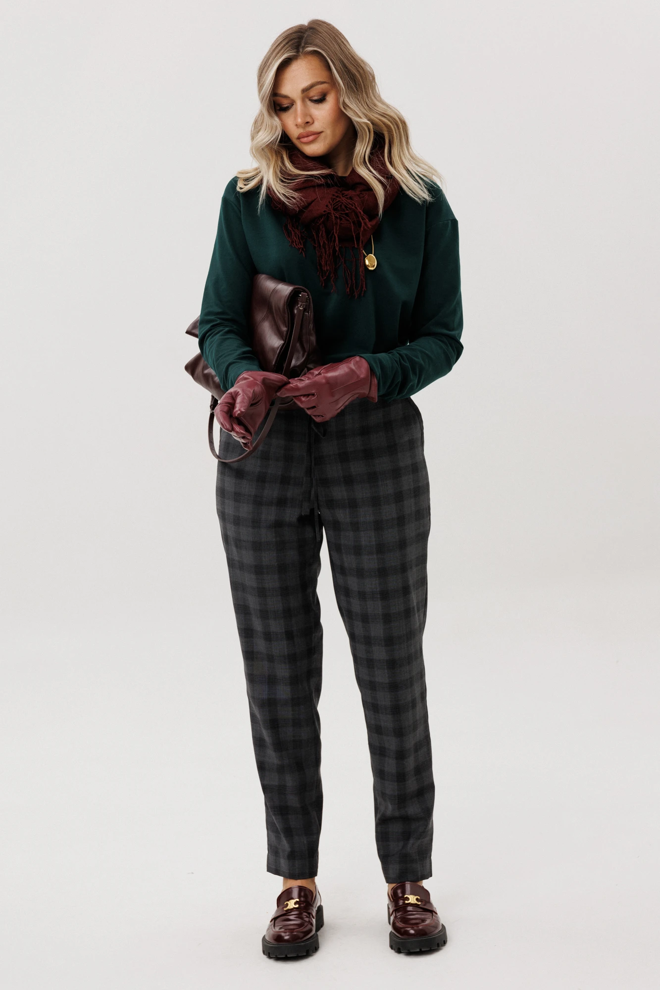 Брючный костюм Ma Vie 711 Серая клетка_ изумрудный
