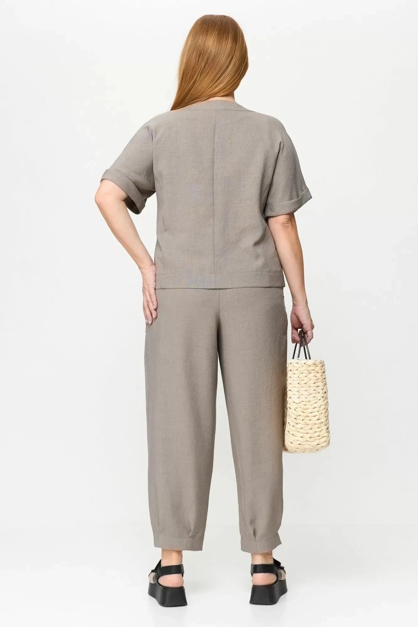 Длина жакета по спинке 57 см, длина рукава от горловины 33 см. Длина брюк по боковому шву 95 см, по шаговому 64 см. Изделие подойдет на рост 170 см.