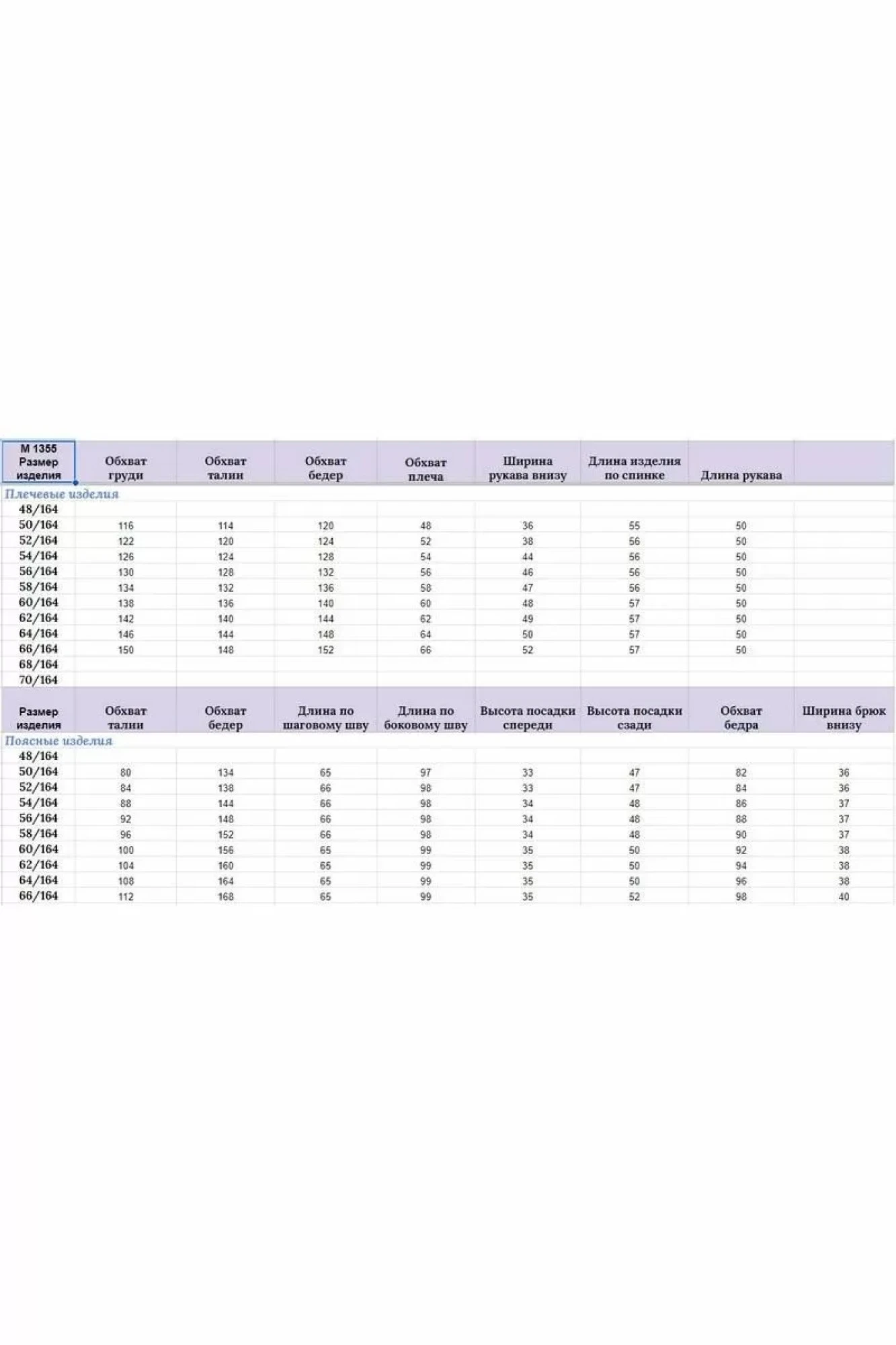 50,52,54,56,58, 60 ,62, 64 ,66лина жакета по спинке 56 см+-1 см, длина рукава от горловины 50 см ± 1см. Длина брюк по боковому шву 99 см+-1см, по шаговому 66 см+-1см. Изделие подойдет на рост 170 см.